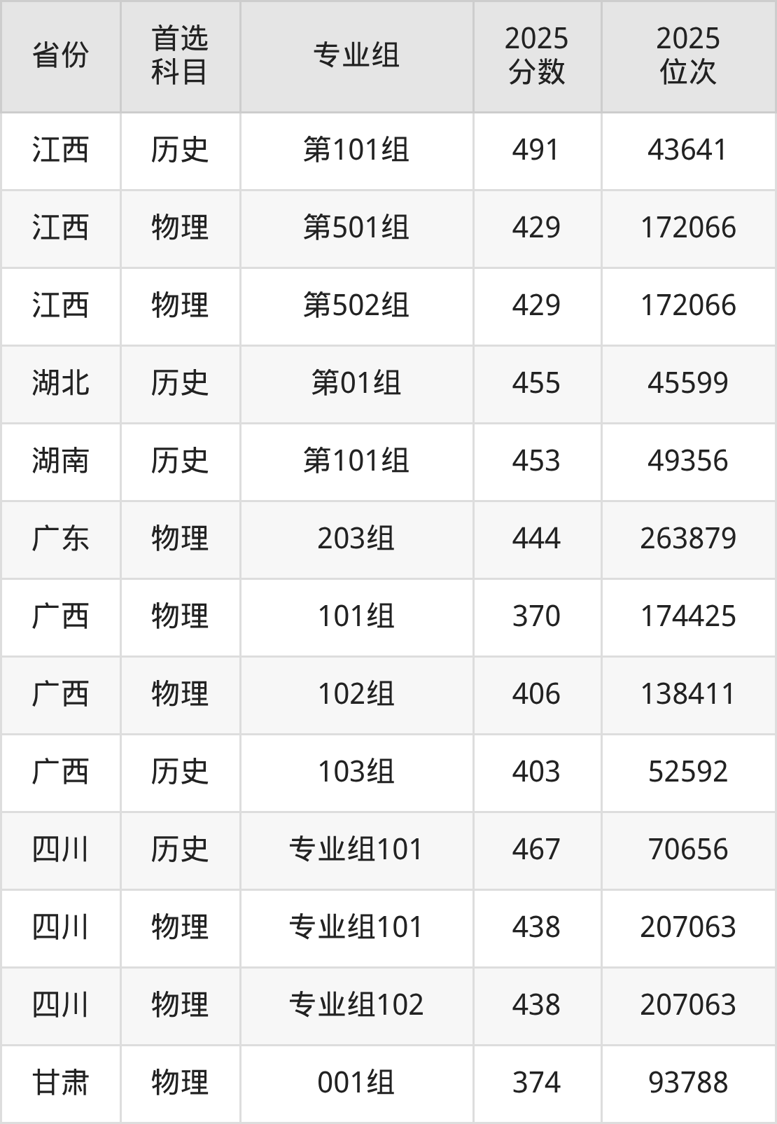 12.江西:物理类429分、172066位,历史类491分、43641位
