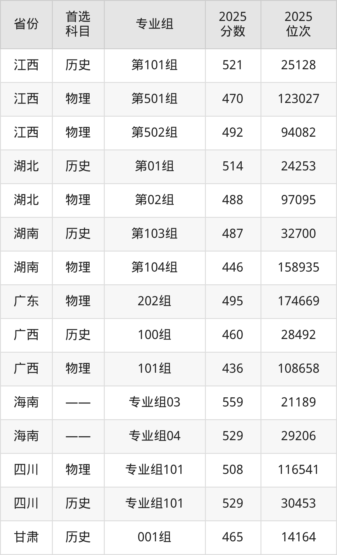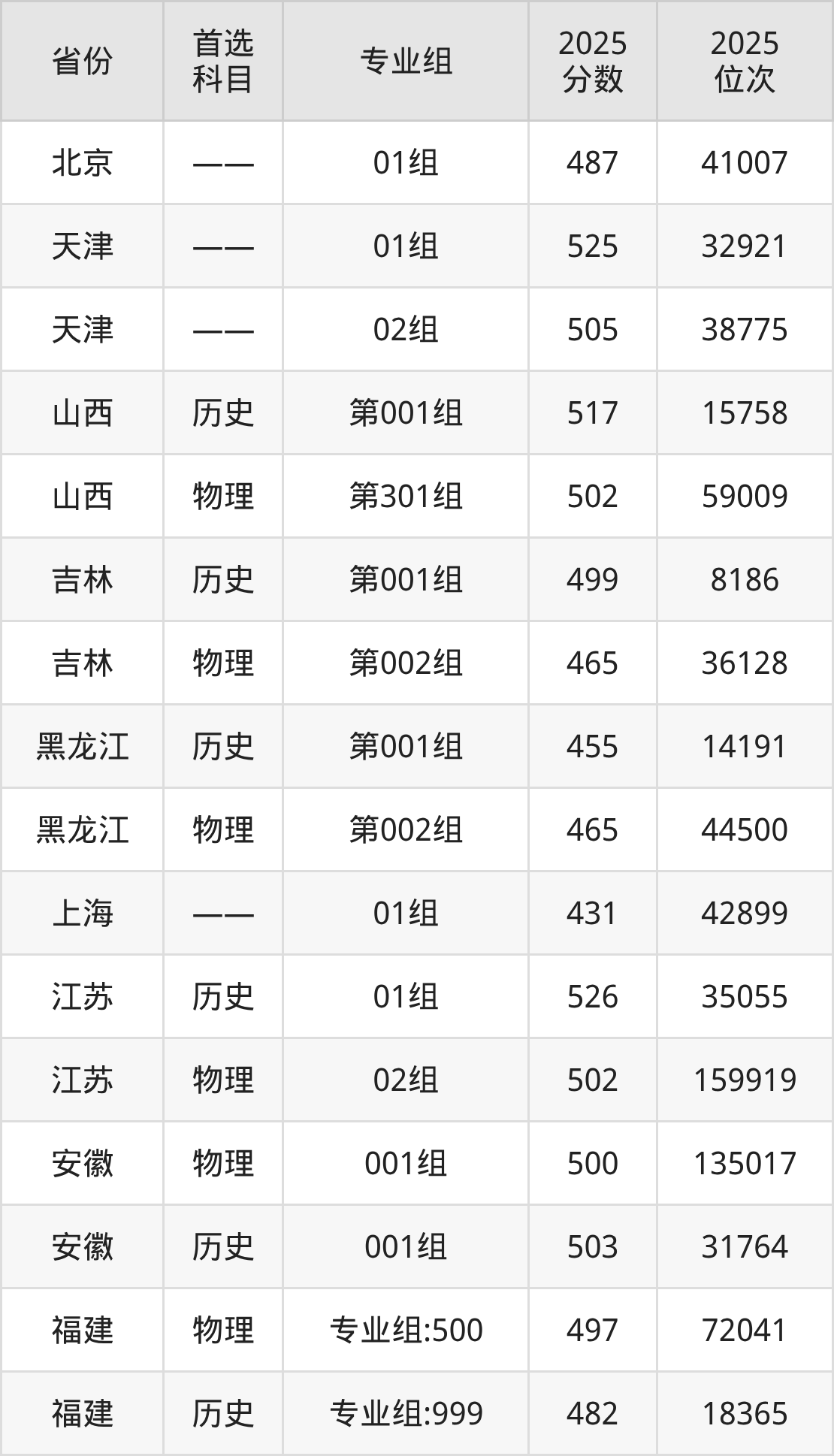 因为大部分地区目前只公布了院校(专业组)分数线,为了方便2026年考生参考,本文就整理出宝鸡文理学院在全国各省不同科类的最低分: