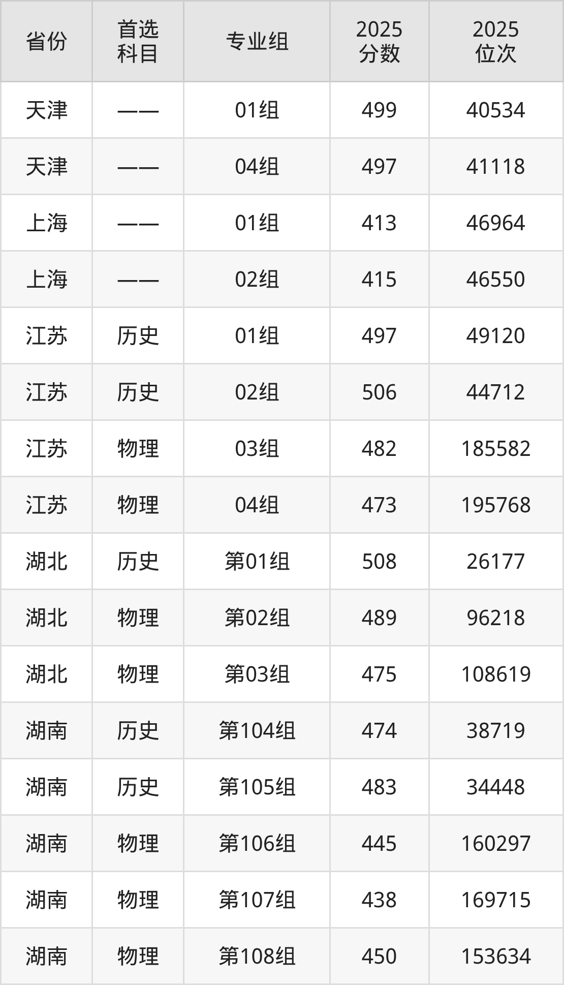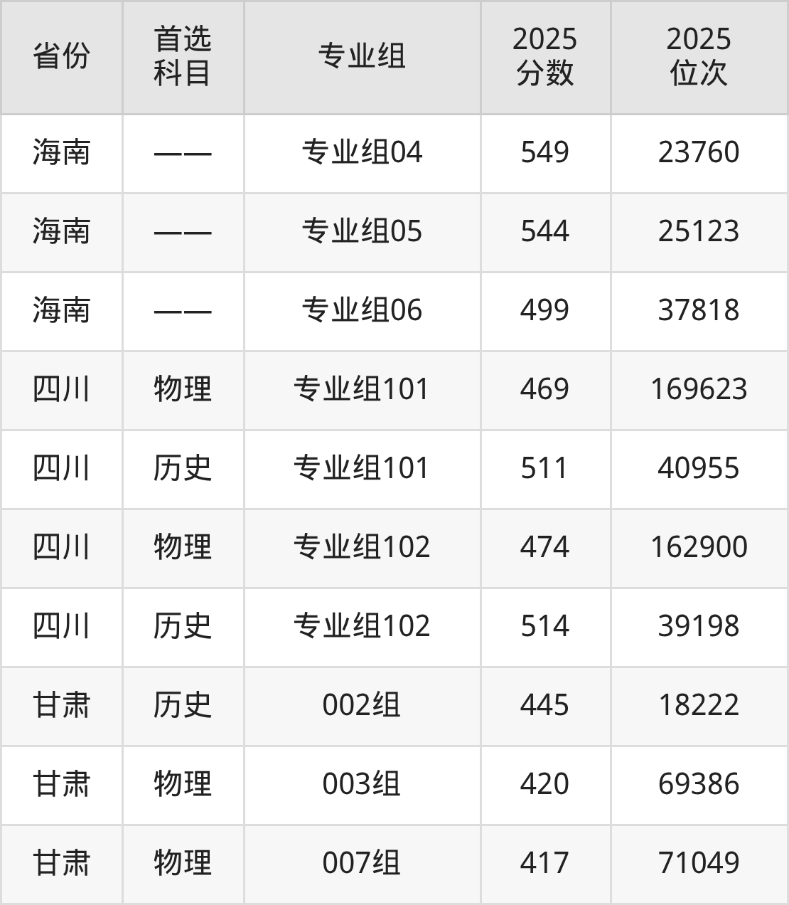 因为大部分地区目前只公布了院校(专业组)分数线,为了方便2026年考生参考,本文就整理出重庆城市科技学院在全国各省不同科类的最低分: