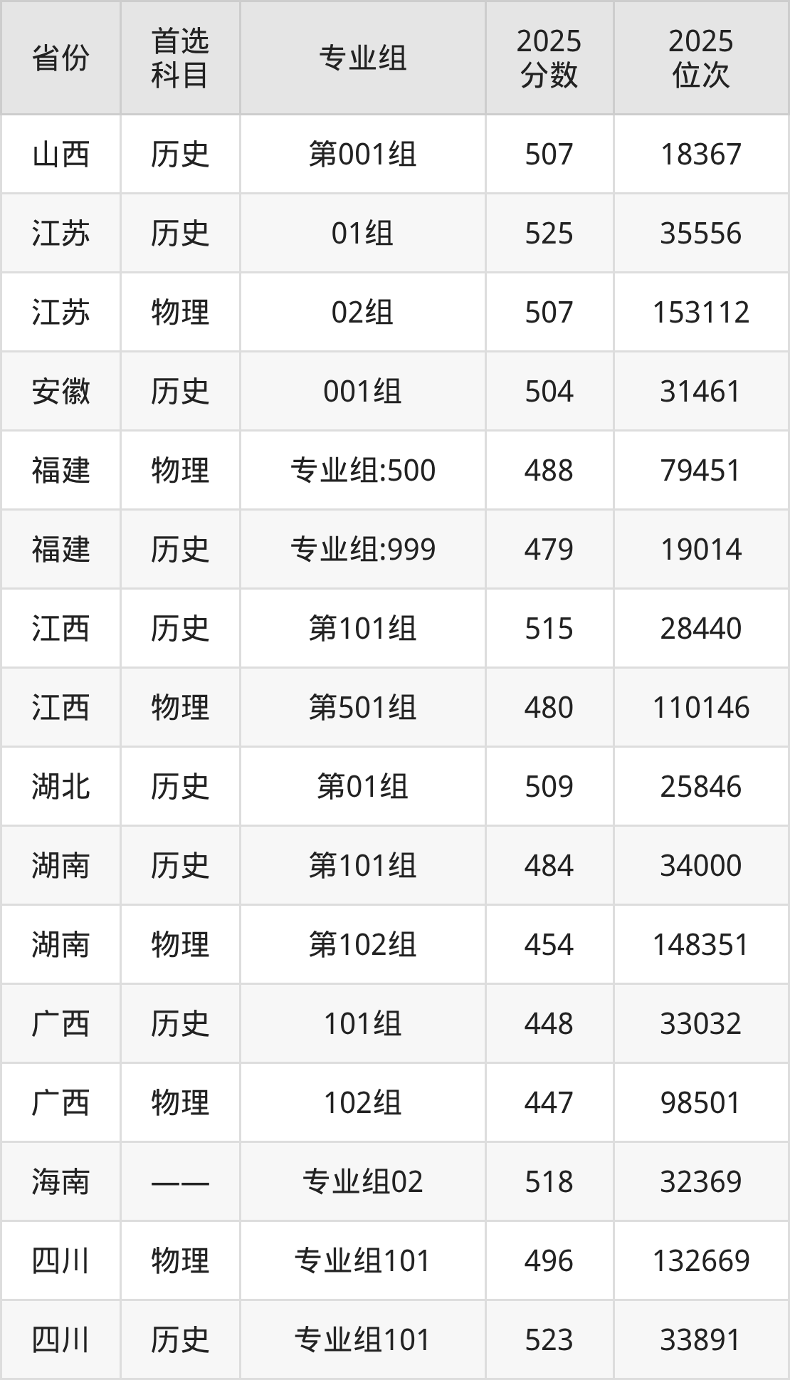 因为大部分地区目前只公布了院校(专业组)分数线,为了方便2026年考生参考,本文就整理出文山学院在全国各省不同科类的最低分:
