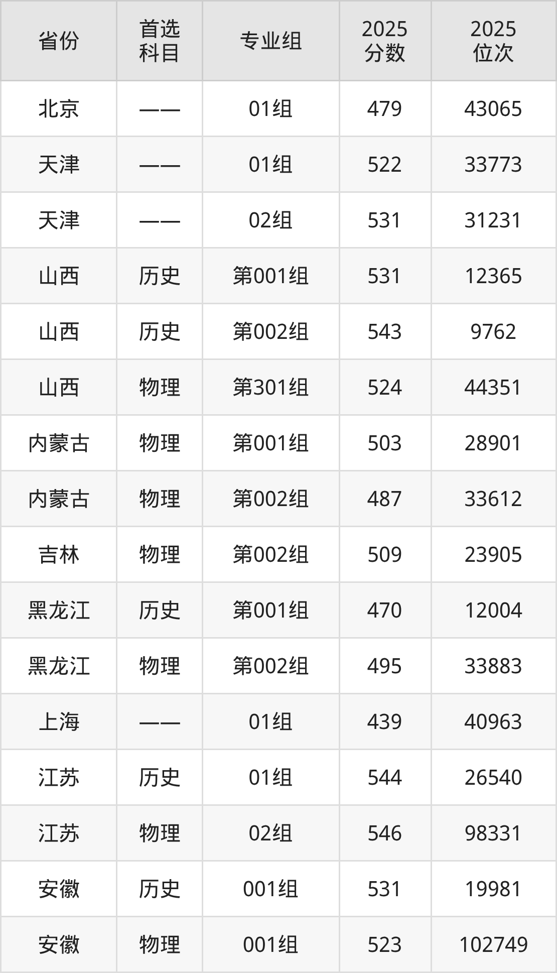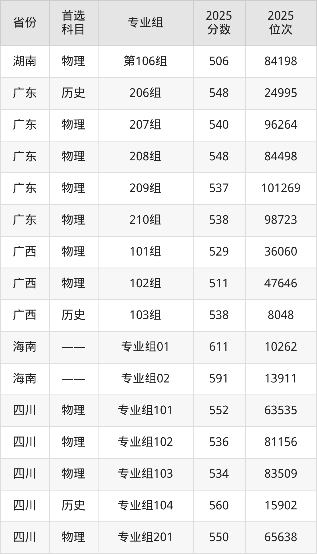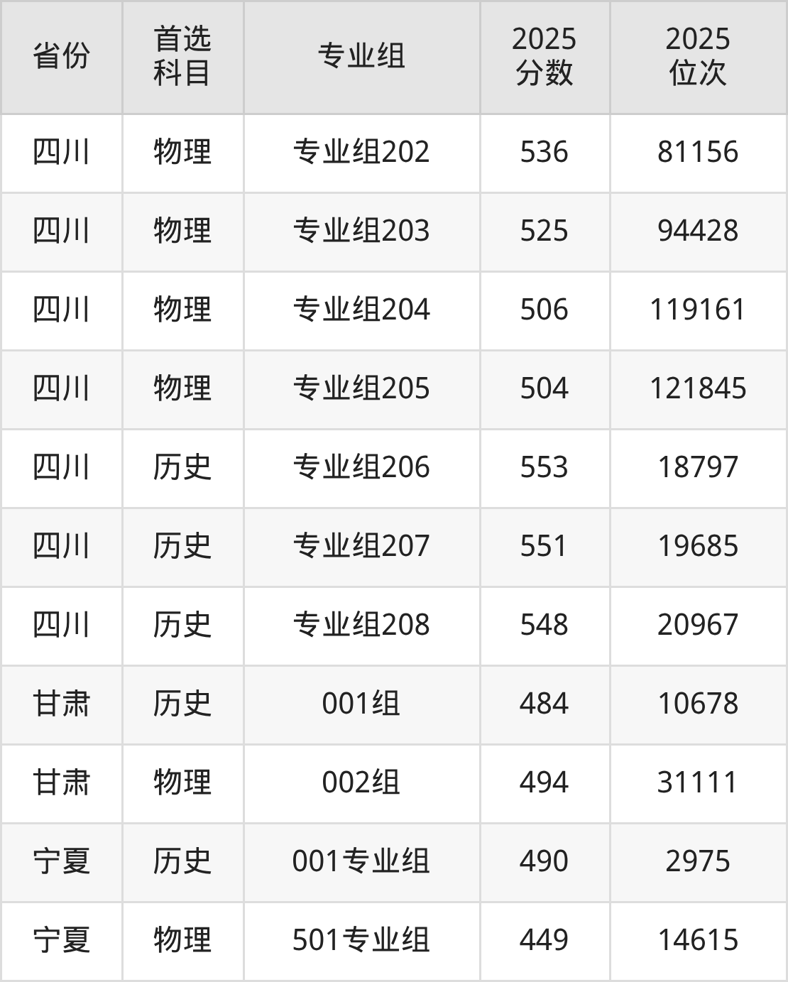 因为大部分地区目前只公布了院校(专业组)分数线,为了方便2026年考生参考,本文就整理出四川轻化工大学在全国各省不同科类的最低分: