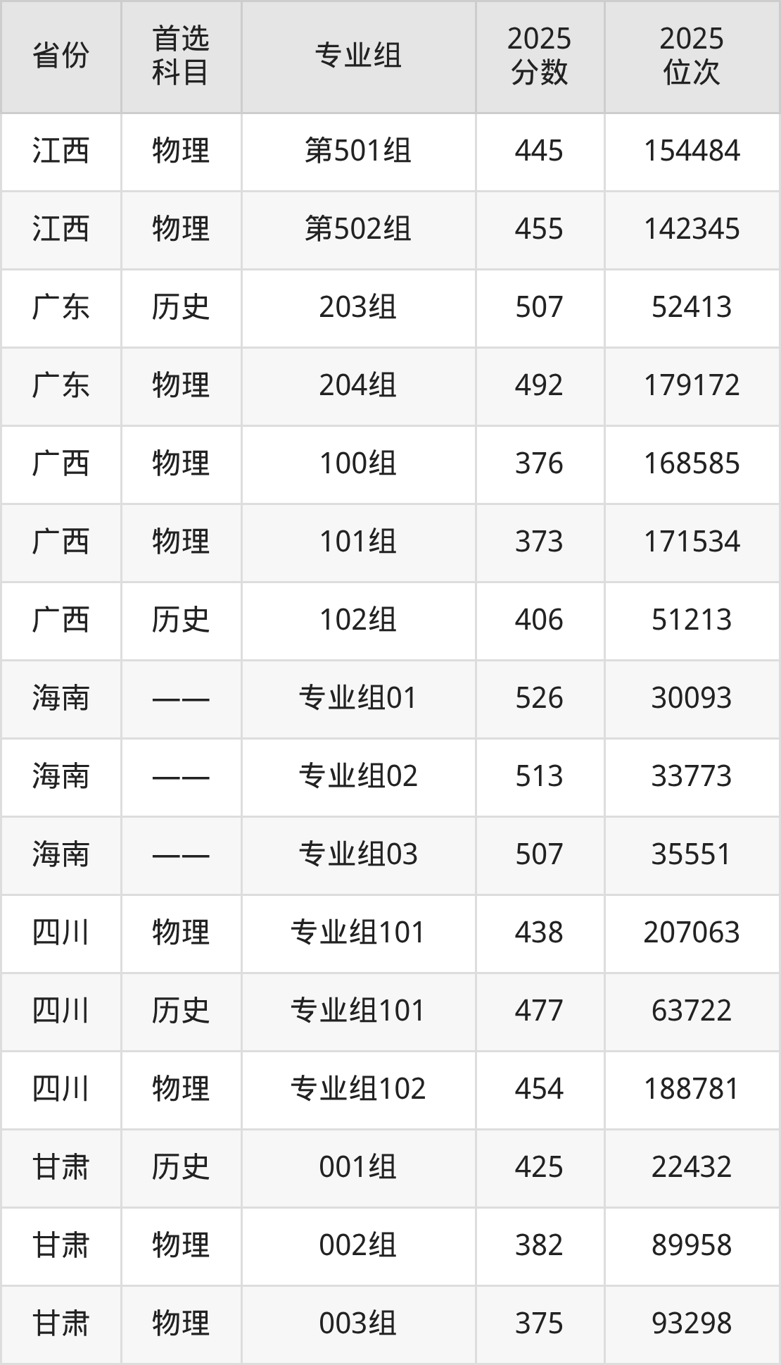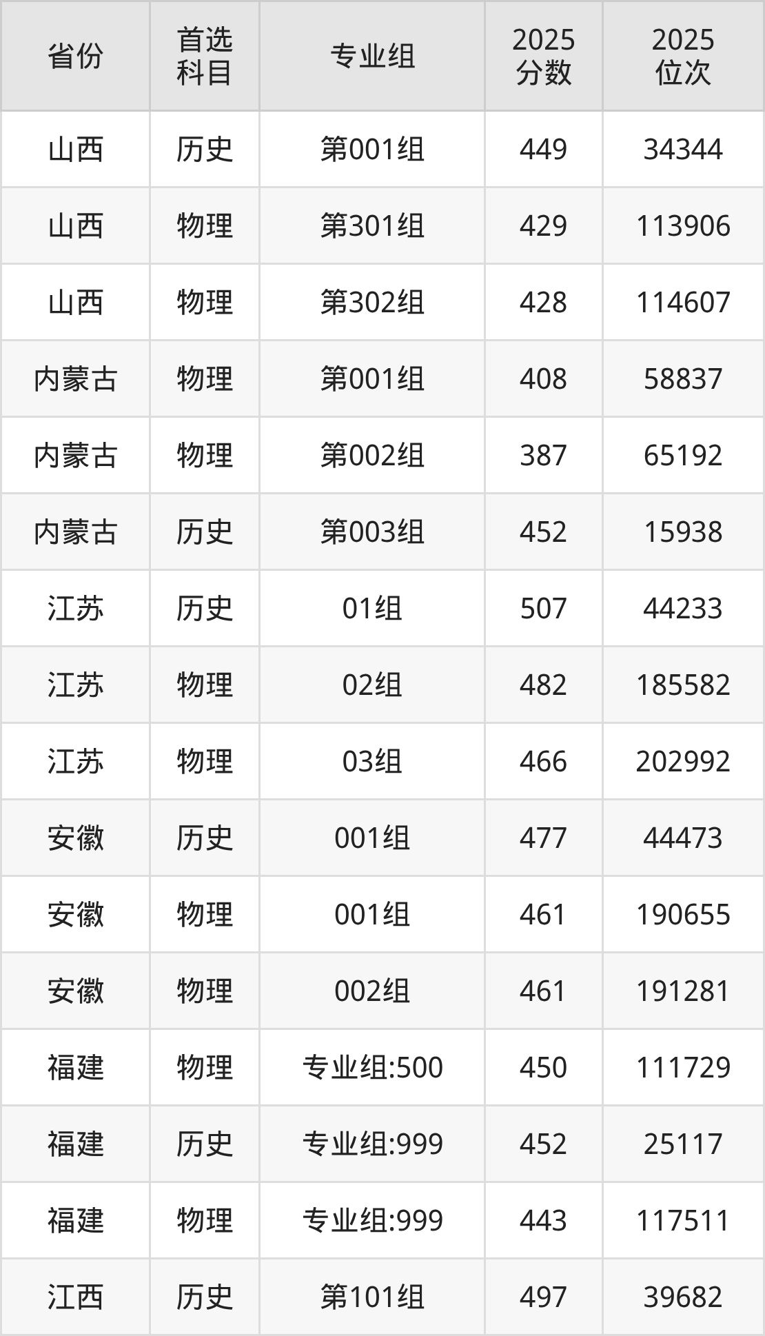 因为大部分地区目前只公布了院校(专业组)分数线,为了方便2026年考生参考,本文就整理出闽南理工学院在全国各省不同科类的最低分: