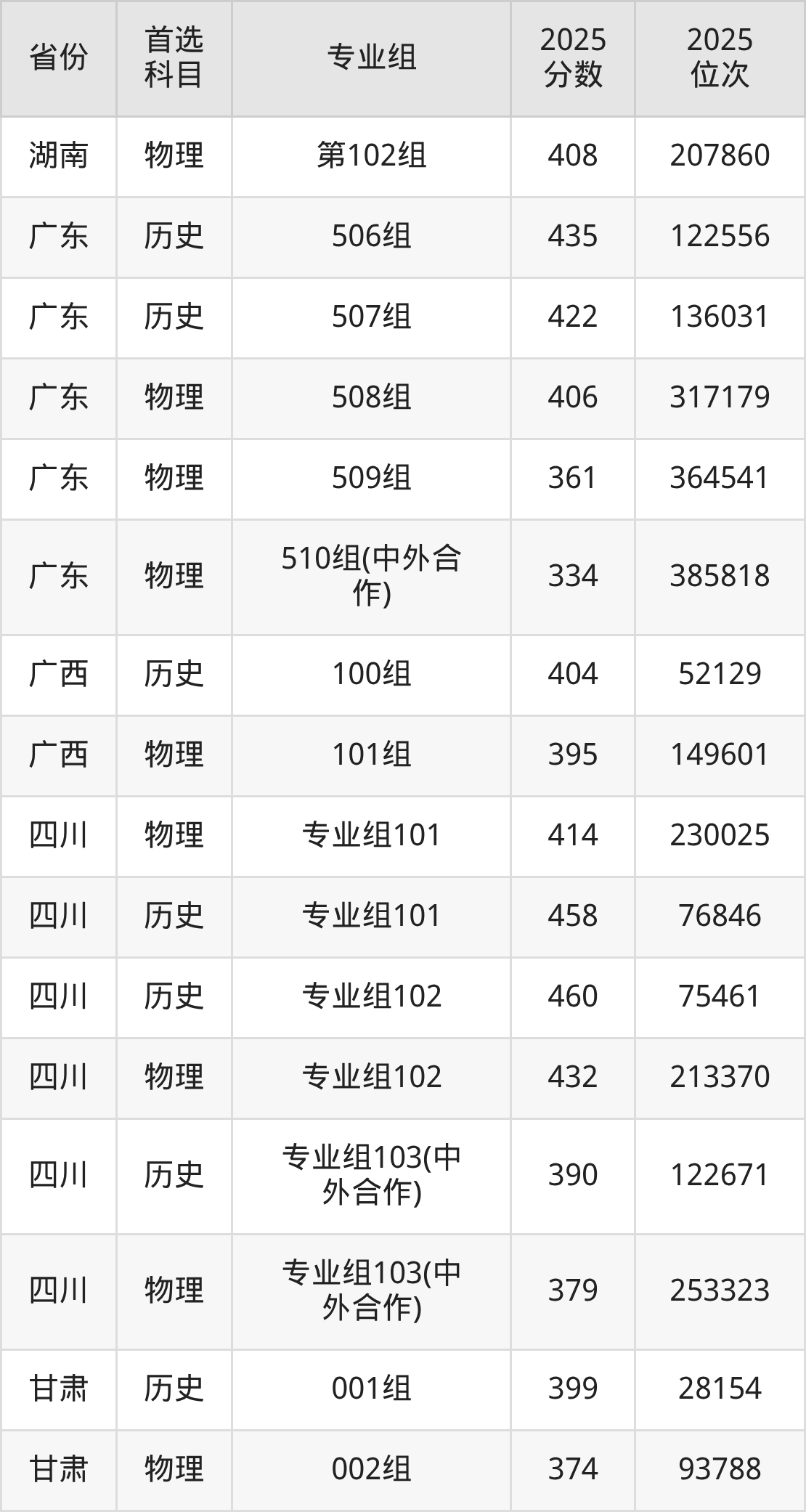 因为大部分地区目前只公布了院校(专业组)分数线,为了方便2026年考生参考,本文就整理出重庆工商职业学院在全国各省不同科类的最低分: