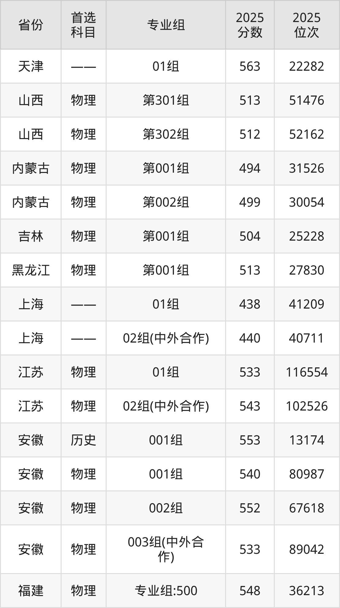因为大部分地区目前只公布了院校(专业组)分数线,为了方便2026年考生参考,本文就整理出嘉兴大学在全国各省不同科类的最低分: