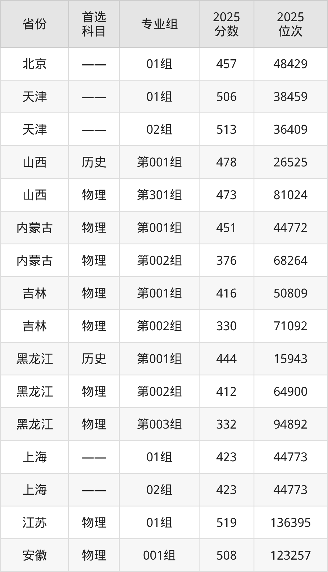 5.内蒙古:物理类376分、68264位