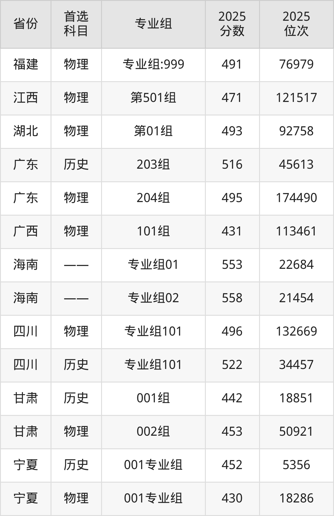 13.福建:物理类491分、76979位