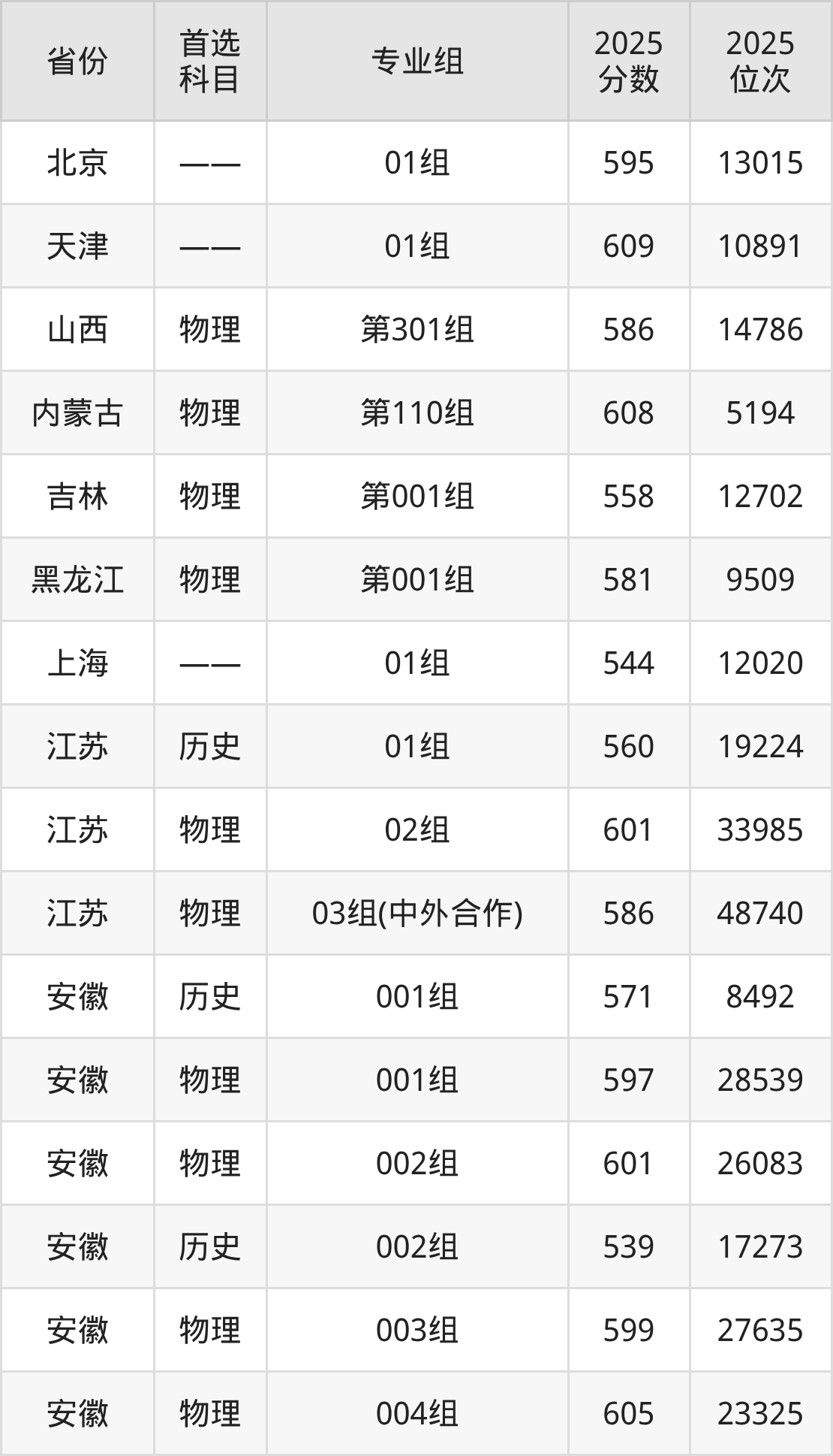 因为大部分地区目前只公布了院校(专业组)分数线,为了方便2026年考生参考,本文就整理出重庆邮电大学在全国各省不同科类的最低分: