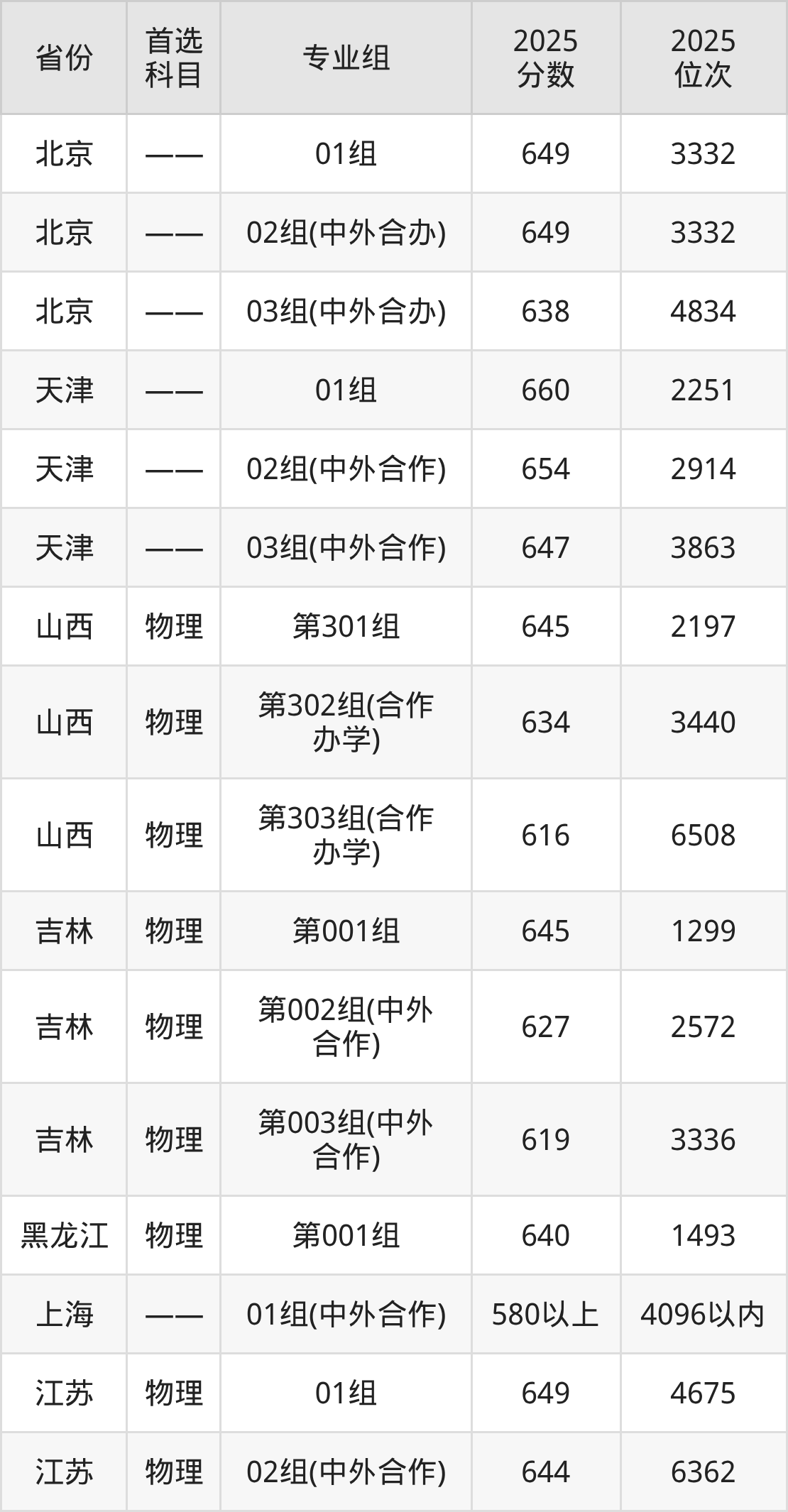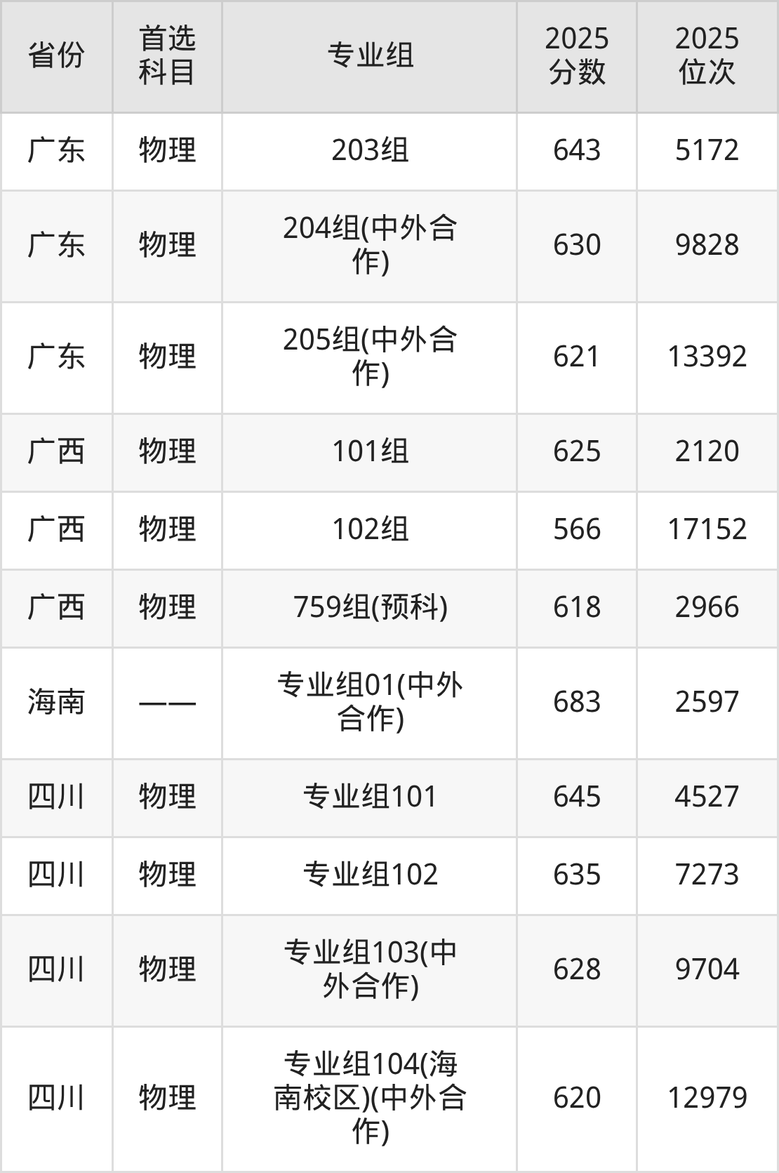 因为大部分地区目前只公布了院校(专业组)分数线,为了方便2026年考生参考,本文就整理出电子科技大学(沙河校区)在全国各省不同科类的最低分: