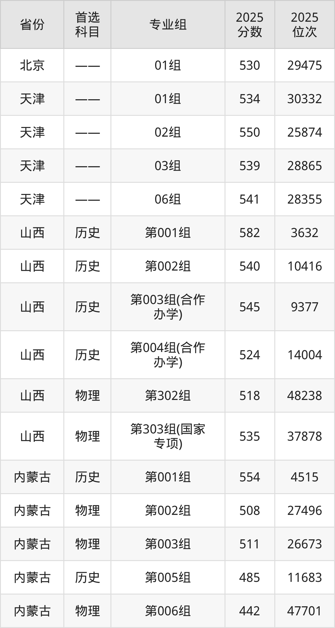 因为大部分地区目前只公布了院校(专业组)分数线,为了方便2026年考生参考,本文就整理出烟台大学在全国各省不同科类的最低分: