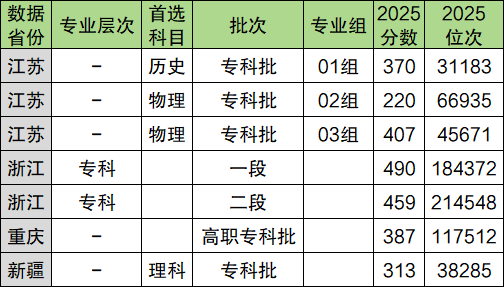 专业组 | 2025 分数 |