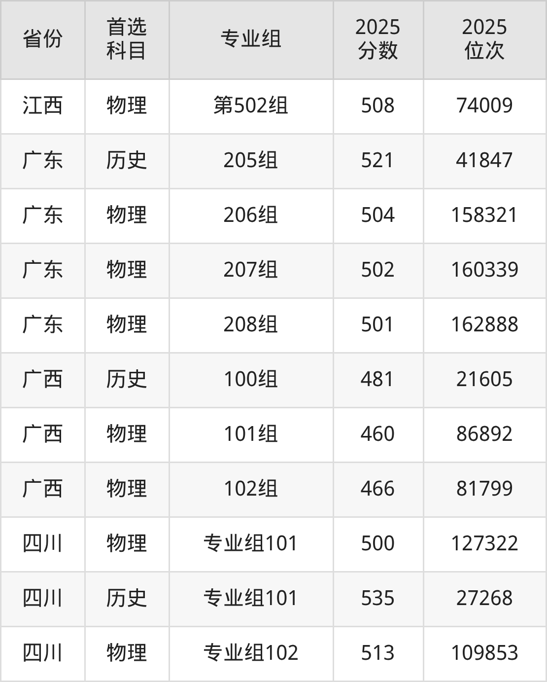 因为大部分地区目前只公布了院校(专业组)分数线,为了方便2026年考生参考,本文就整理出宿迁学院在全国各省不同科类的最低分: