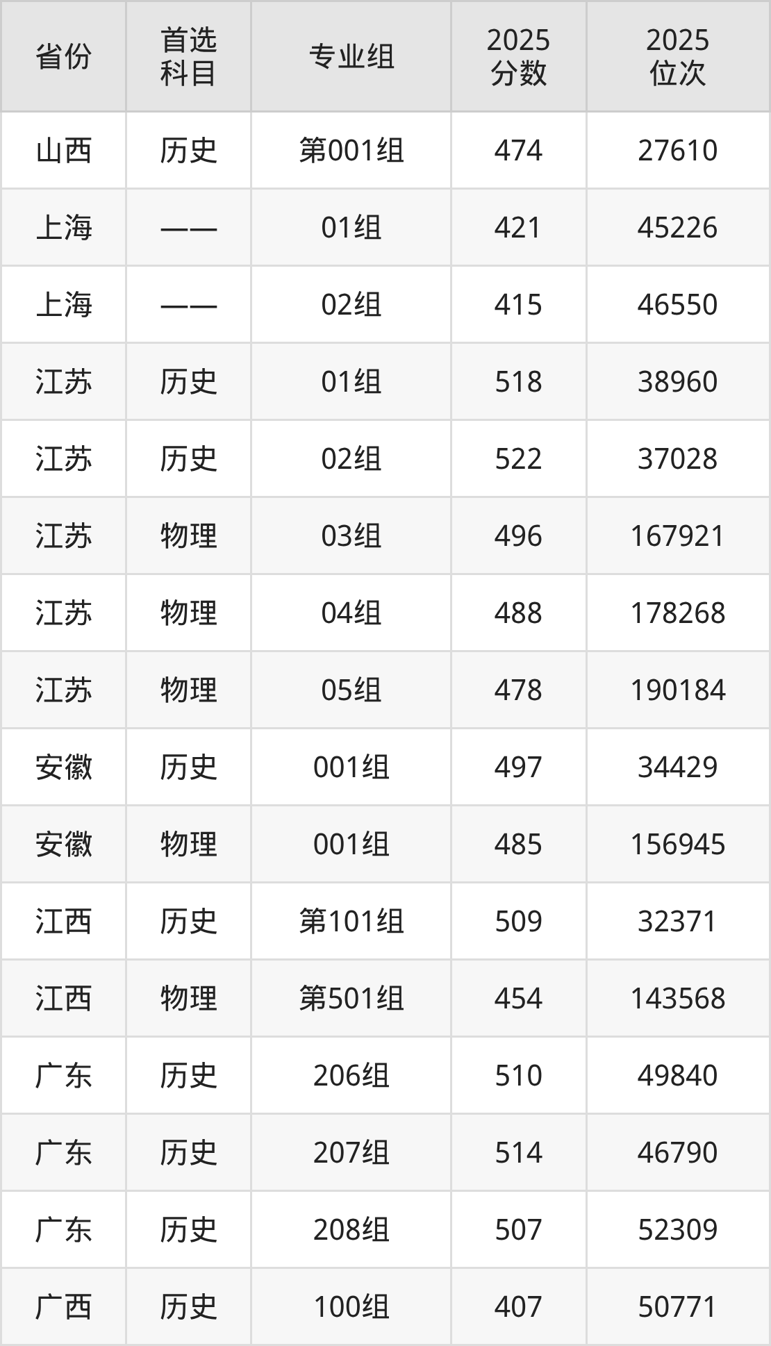 1.山西:历史类474分、27610位