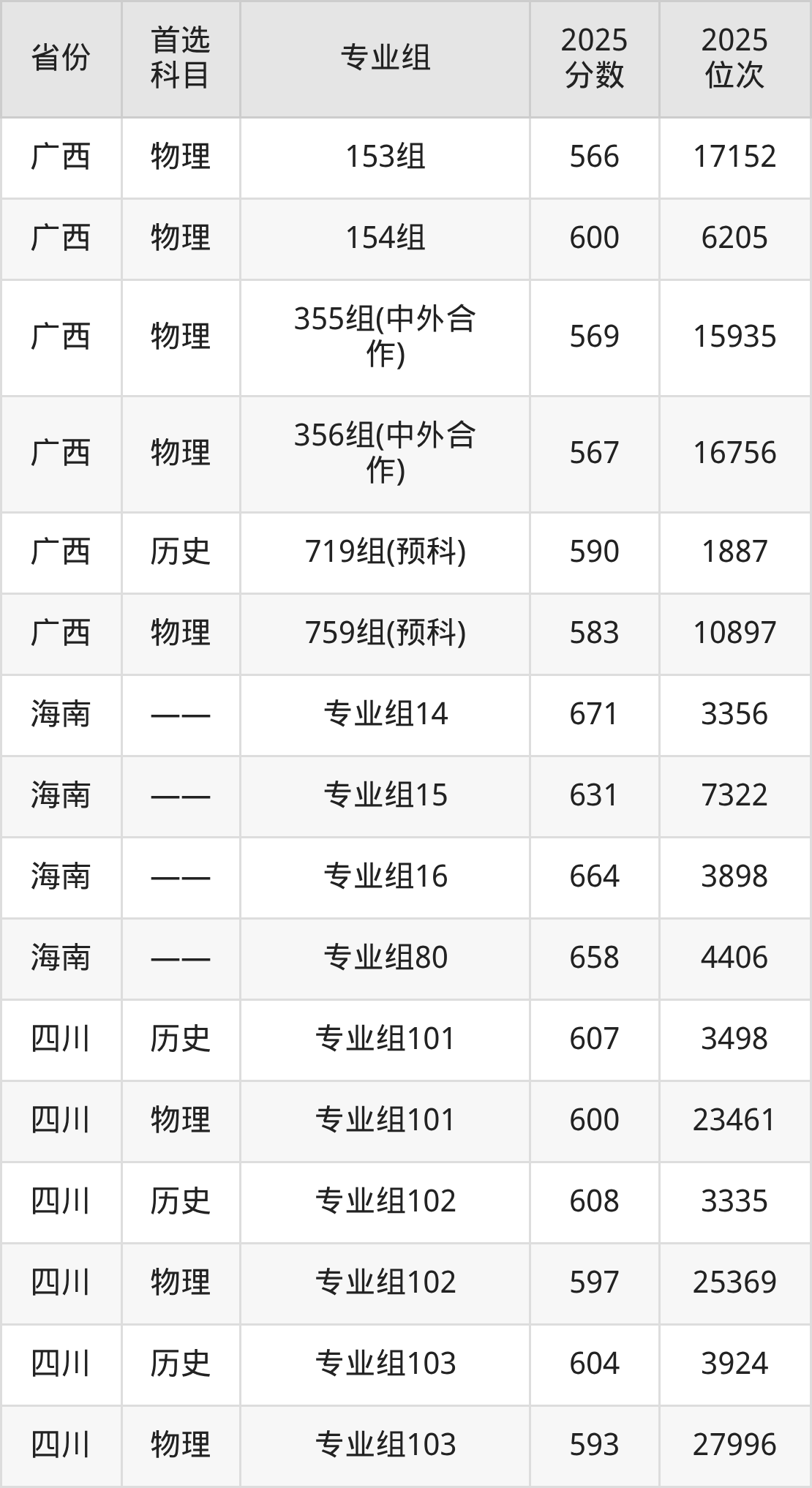 因为大部分地区目前只公布了院校(专业组)分数线,为了方便2026年考生参考,本文就整理出西南大学在全国各省不同科类的最低分: