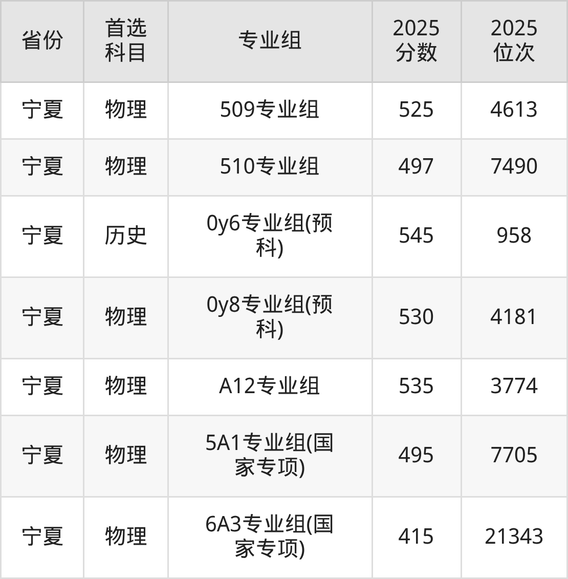 25.宁夏:历史类539分、1127位,物理类415分、21343位