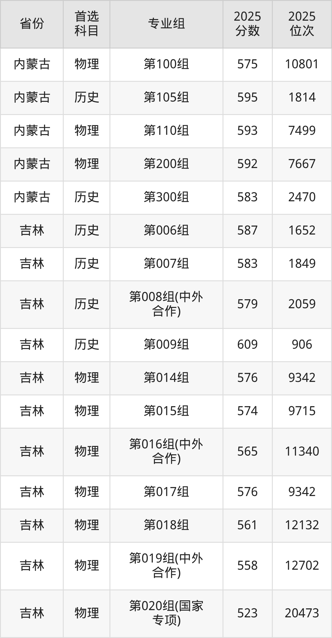 7.吉林:历史类579分、2059位,物理类523分、20473位