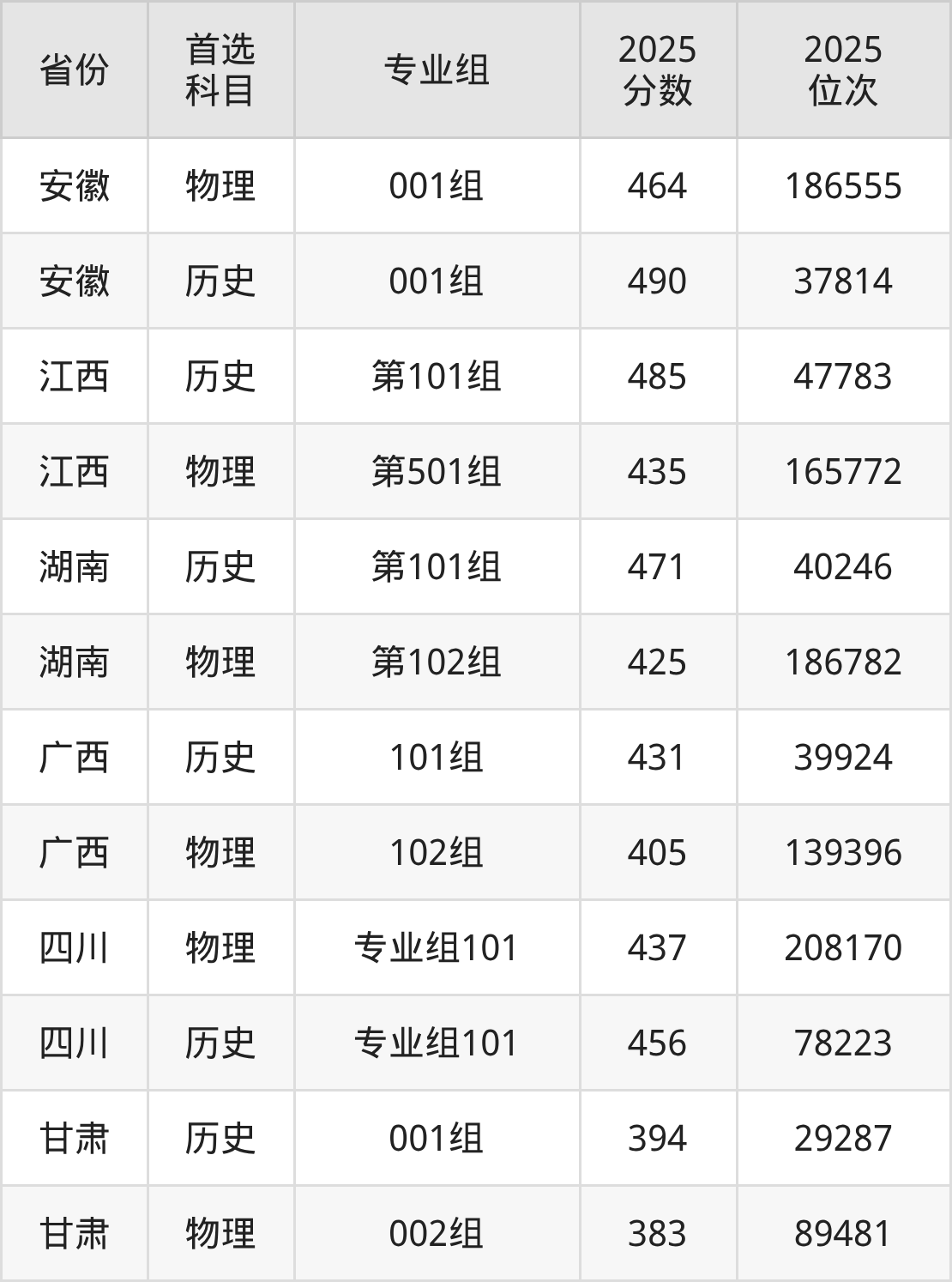 4.湖南:物理类425分、186782位,历史类471分、40246位