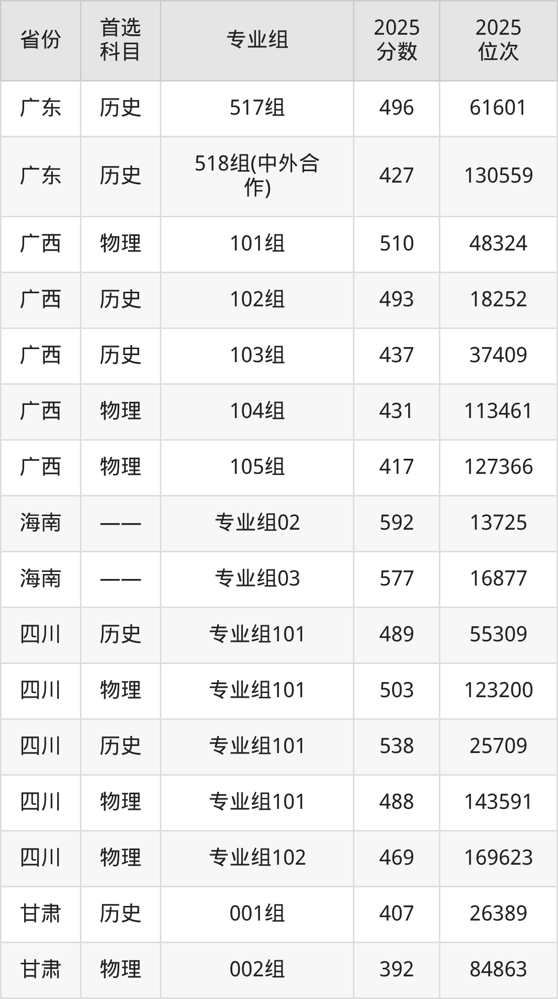 因为大部分地区目前只公布了院校(专业组)分数线,为了方便2026年考生参考,本文就整理出广东轻工职业技术大学在全国各省不同科类的最低分: