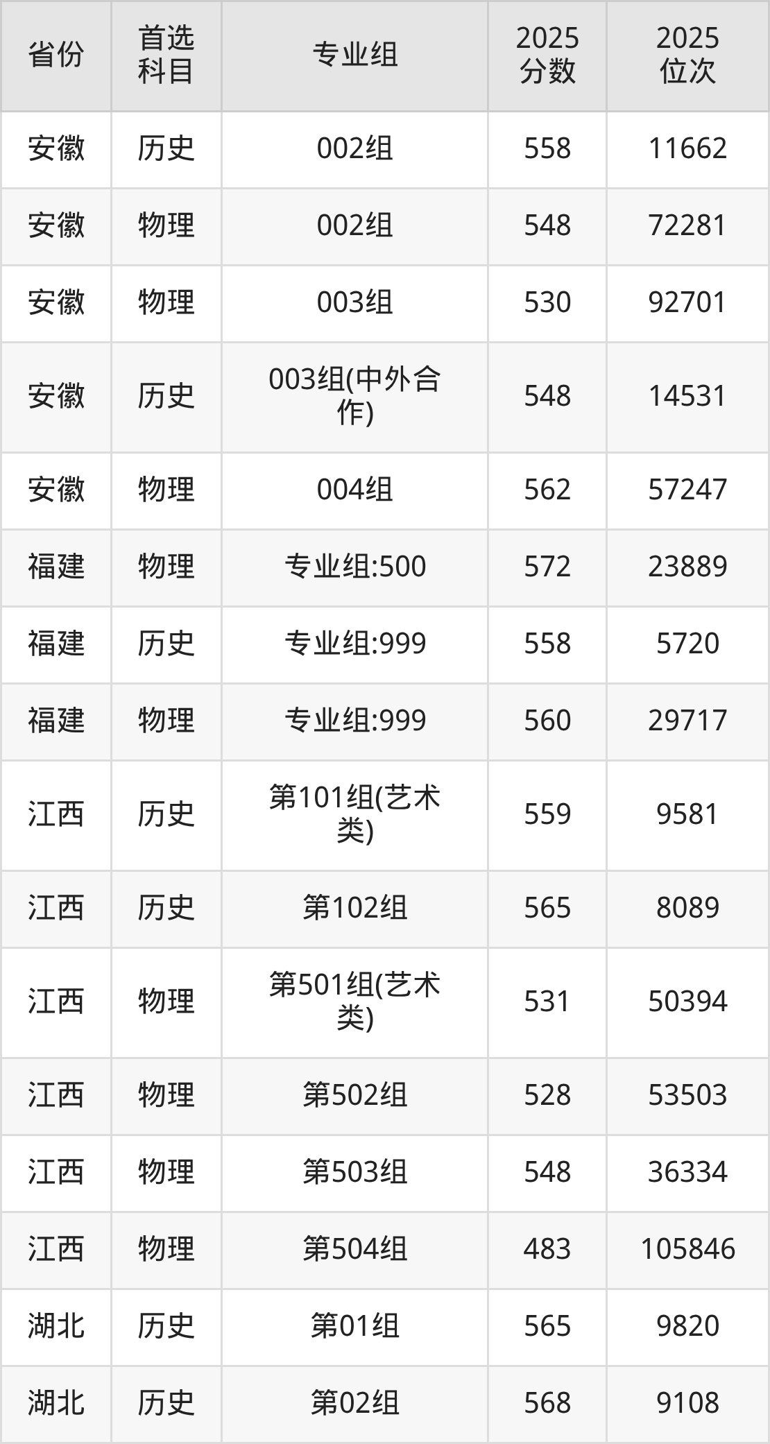 因为大部分地区目前只公布了院校(专业组)分数线,为了方便2026年考生参考,本文就整理出浙江传媒学院在全国各省不同科类的最低分: