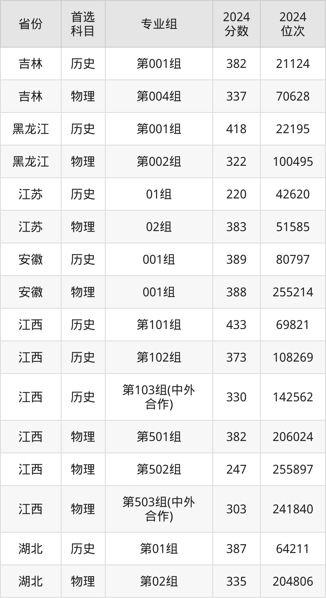 因为大部分地区目前只公布了院校(专业组)分数线,为了方便2025年考生参考,本文就整理出赣州师范高等专科学校在全国各省不同科类的最低分: