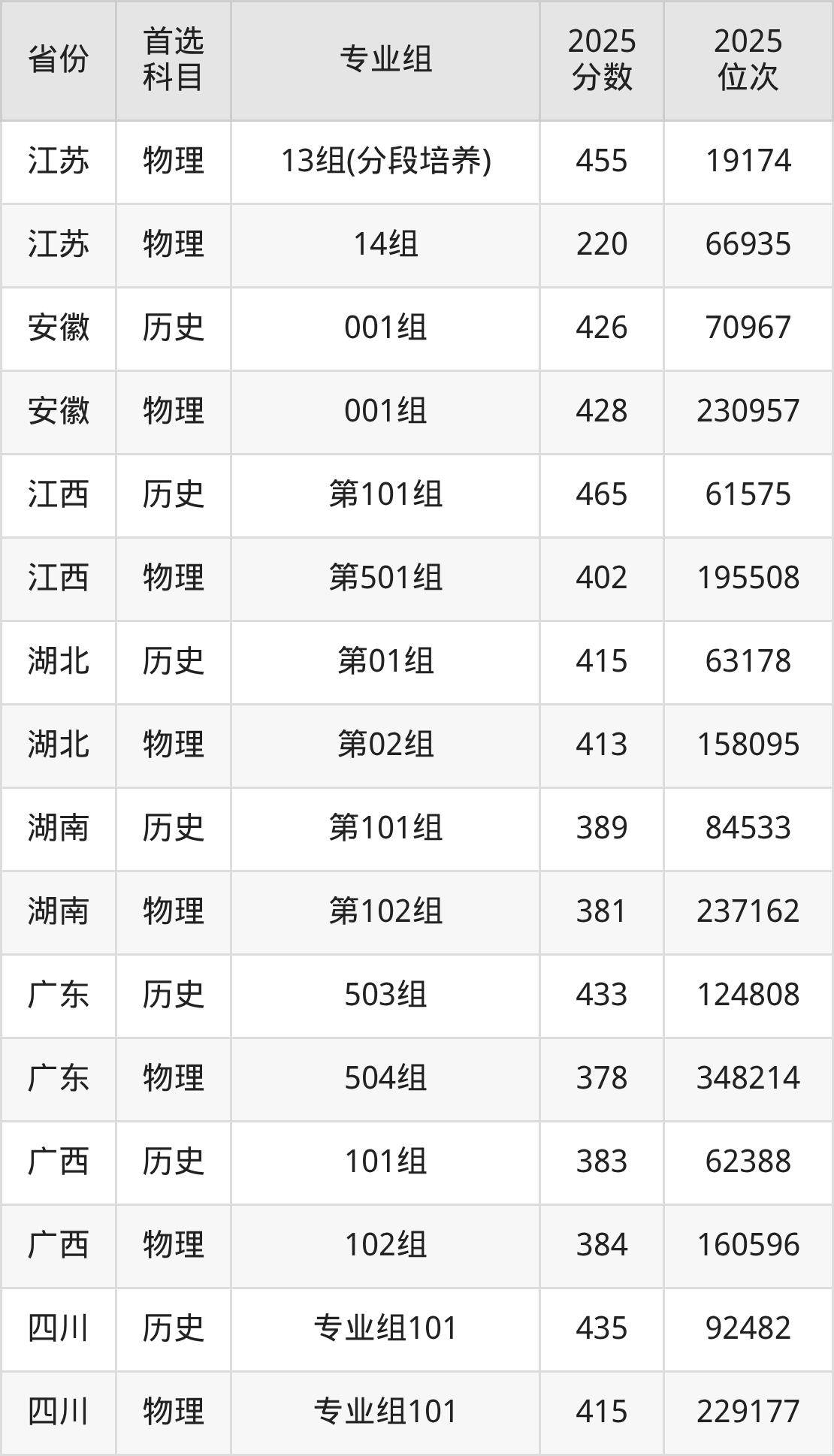 因为大部分地区目前只公布了院校(专业组)分数线,为了方便2026年考生参考,本文就整理出江苏商贸职业学院在全国各省不同科类的最低分: