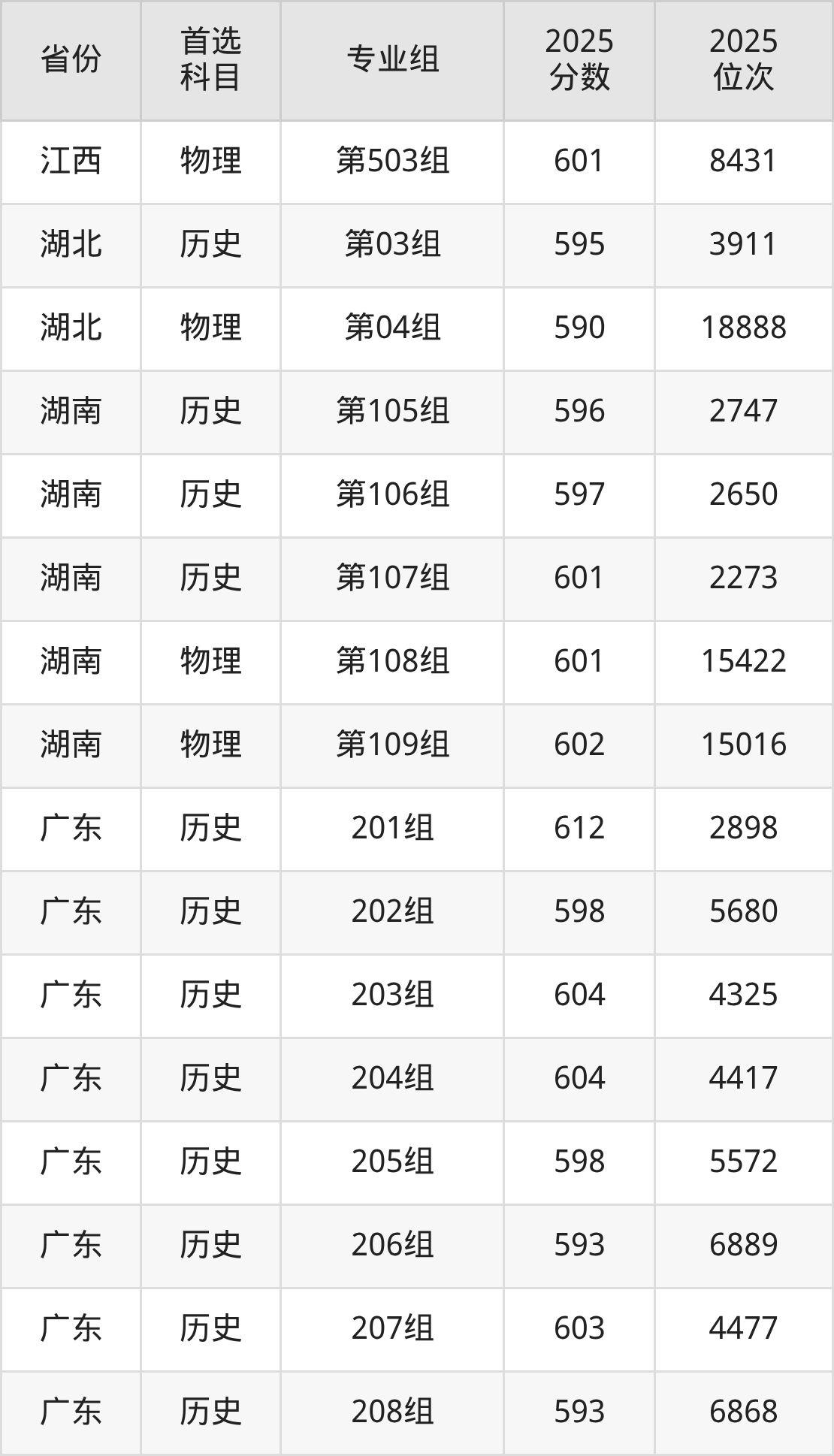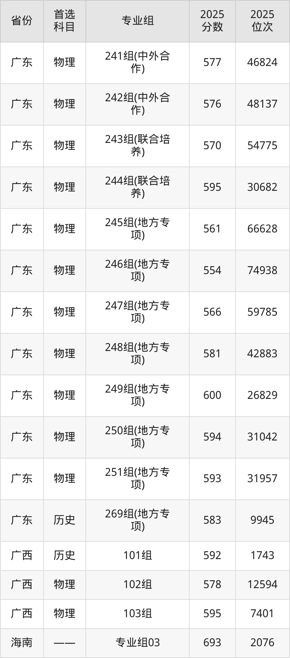 因为大部分地区目前只公布了院校(专业组)分数线,为了方便2026年考生参考,本文就整理出华南师范大学在全国各省不同科类的最低分: