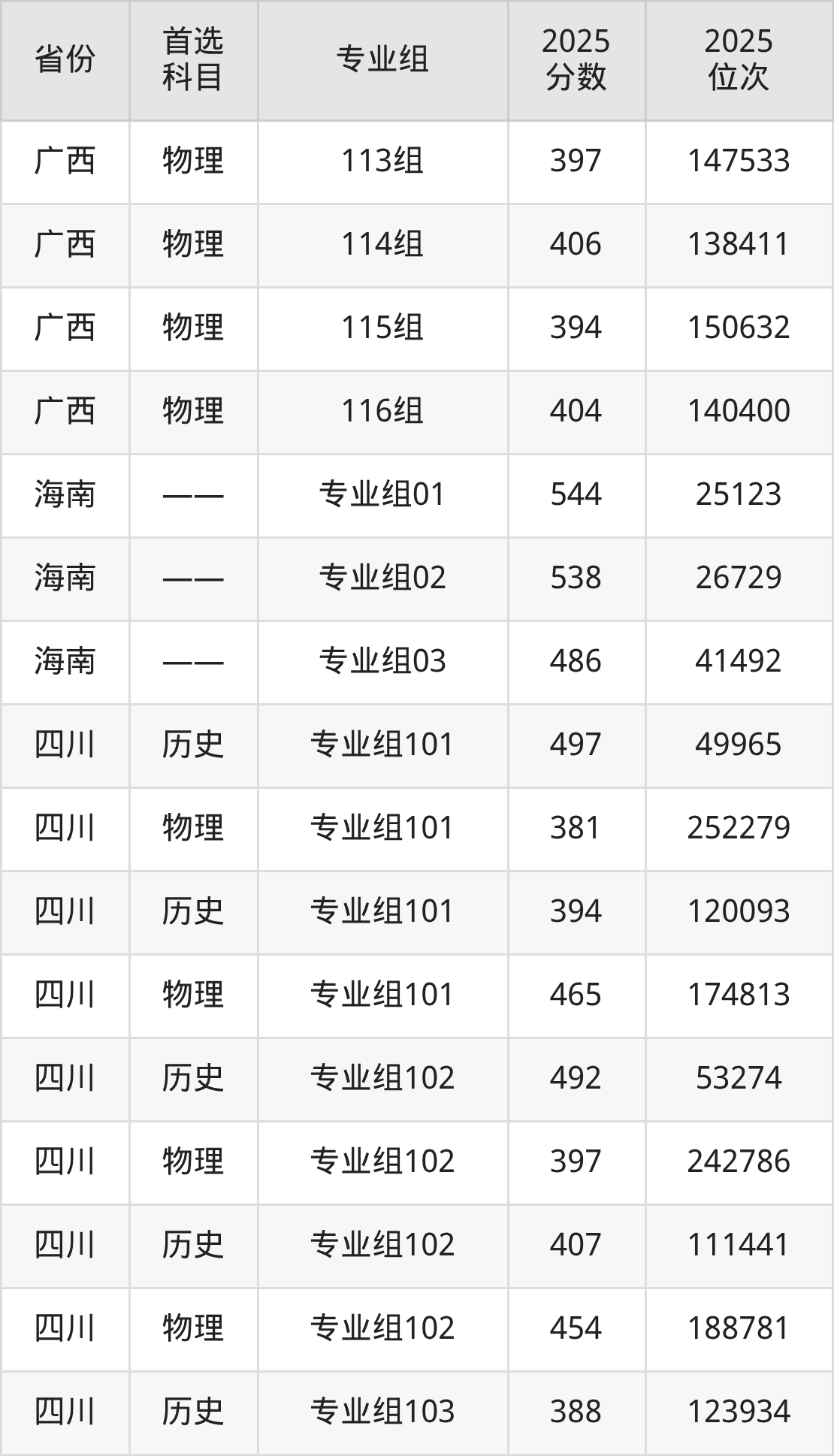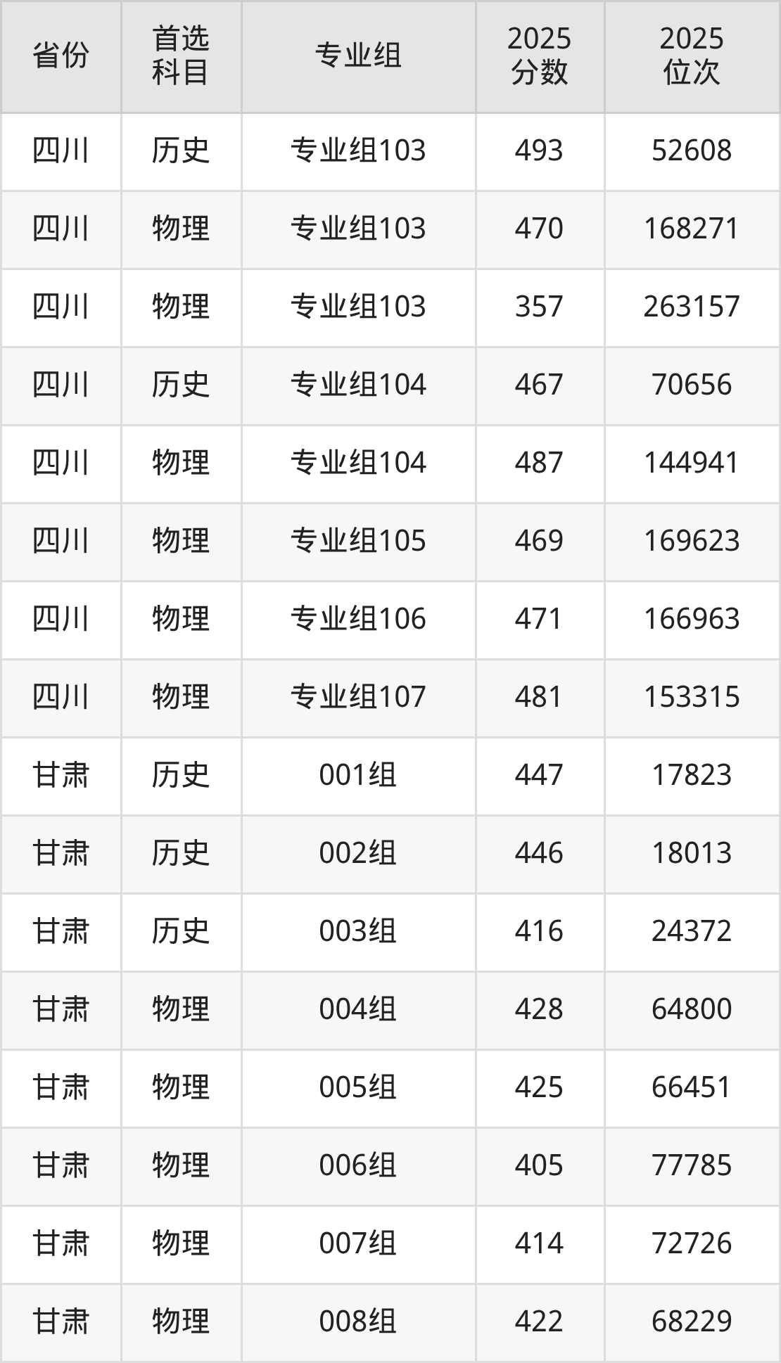 因为大部分地区目前只公布了院校(专业组)分数线,为了方便2026年考生参考,本文就整理出西南财经大学天府学院在全国各省不同科类的最低分: