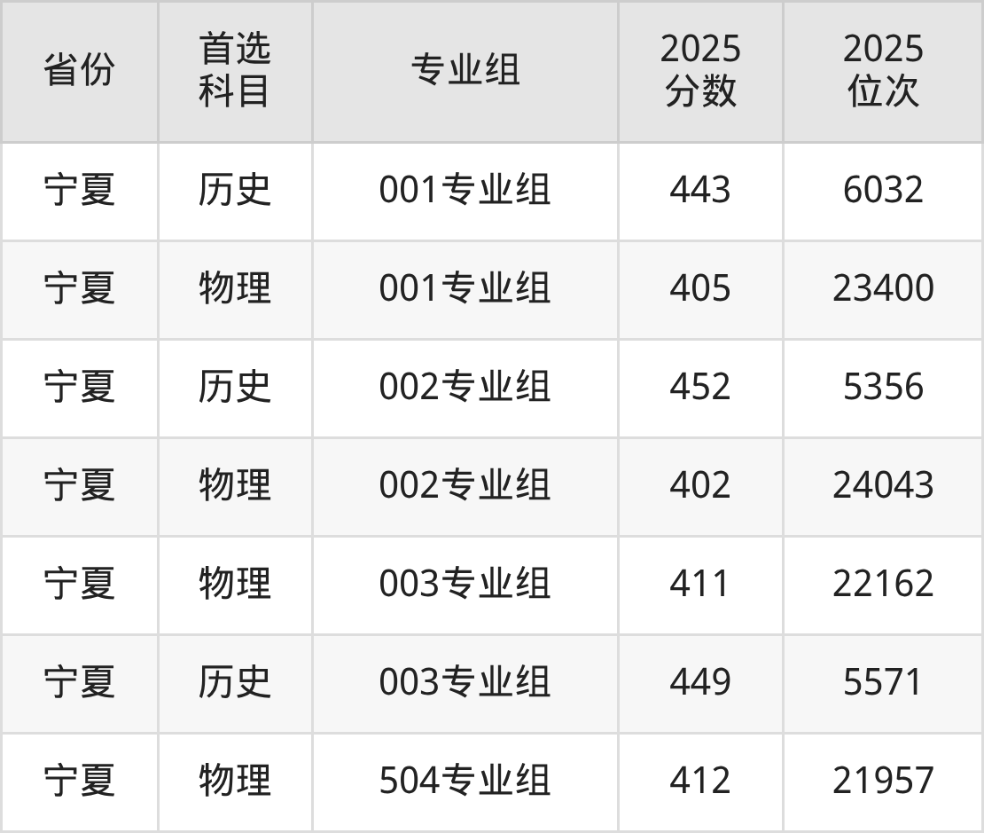 25.宁夏:物理类402分、24043位,历史类443分、6032位