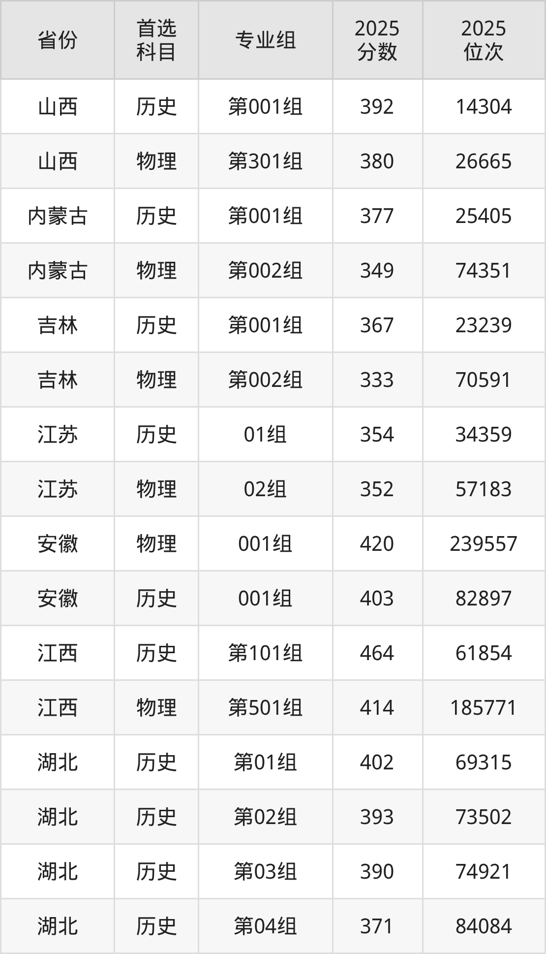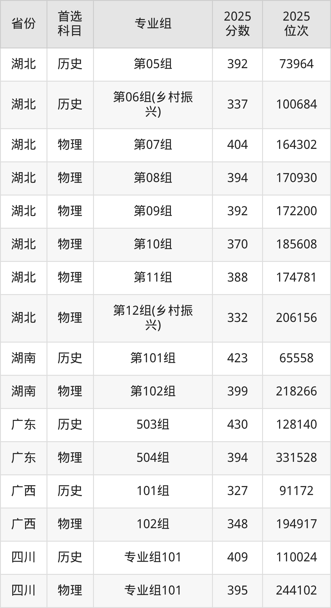 因为大部分地区目前只公布了院校(专业组)分数线,为了方便2026年考生参考,本文就整理出武汉工程职业技术学院在全国各省不同科类的最低分: