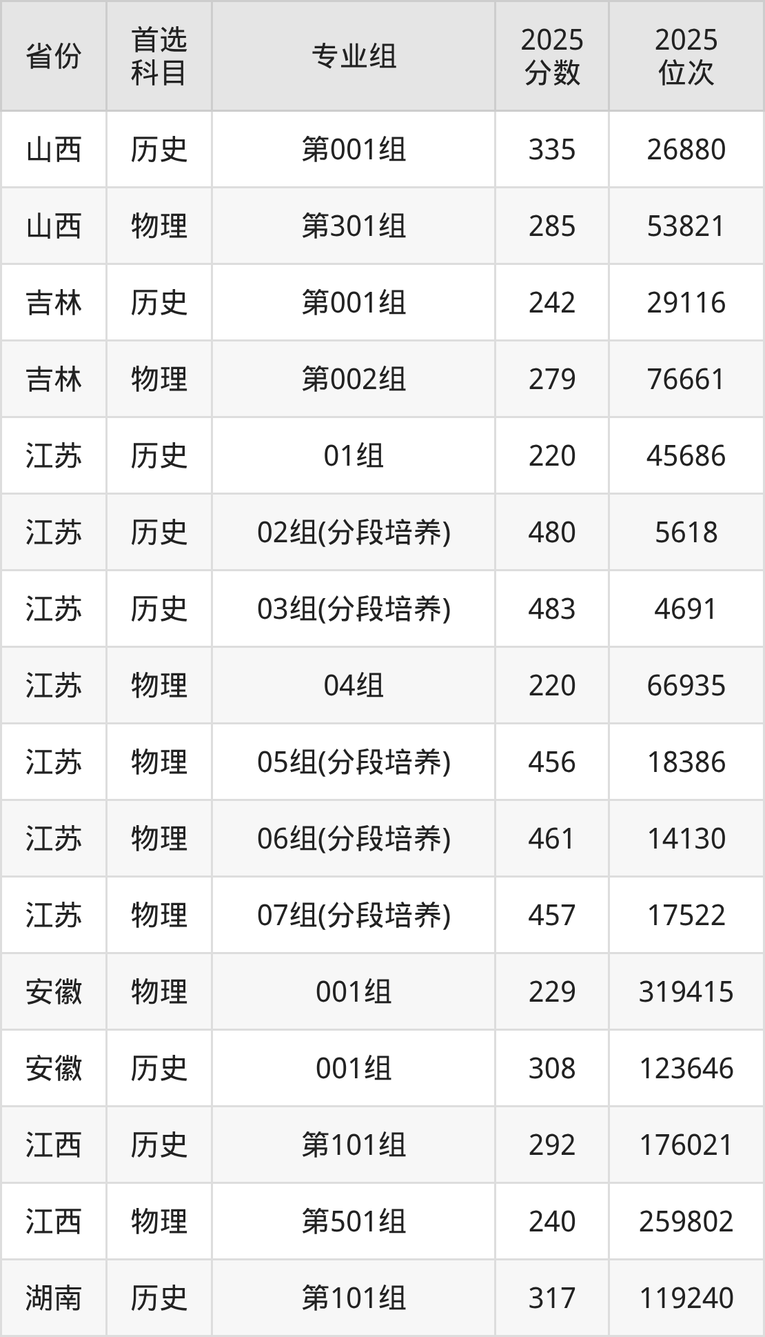 4.江苏:历史类220分、45686位,物理类220分、66935位
