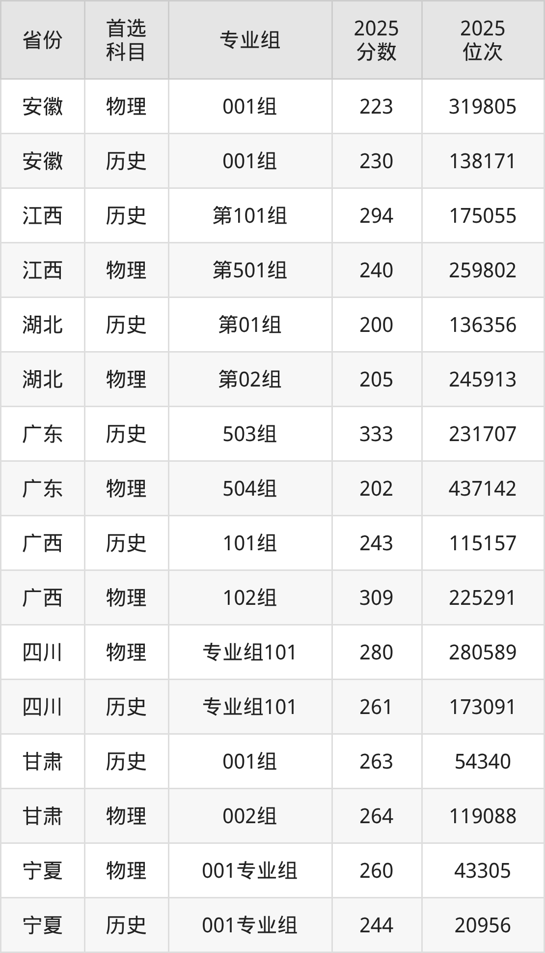 5.江西:历史类294分、175055位,物理类240分、259802位