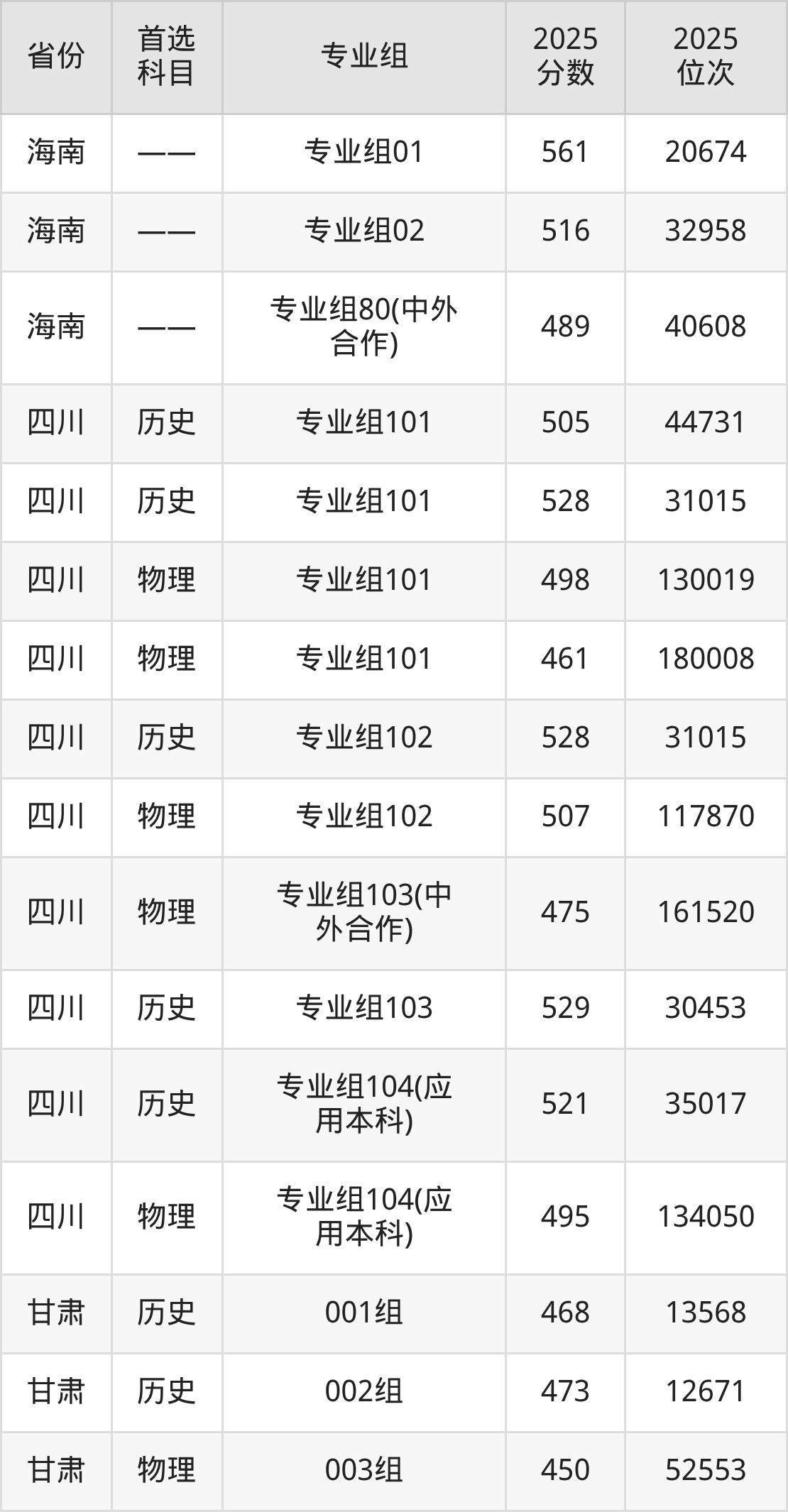 因为大部分地区目前只公布了院校(专业组)分数线,为了方便2026年考生参考,本文就整理出四川旅游学院在全国各省不同科类的最低分: