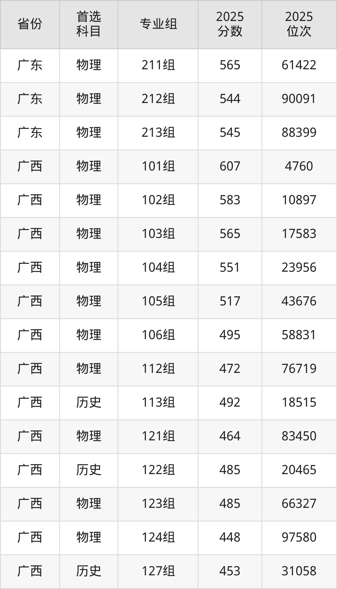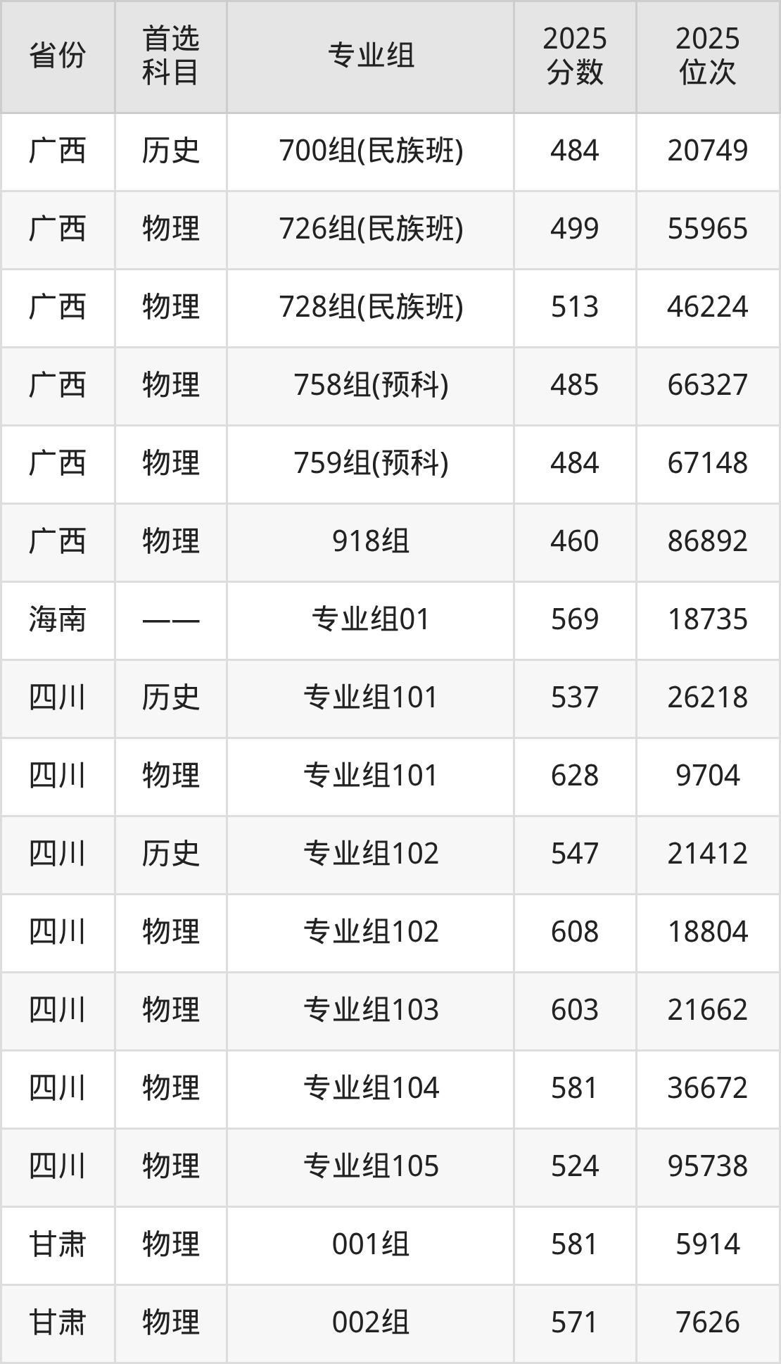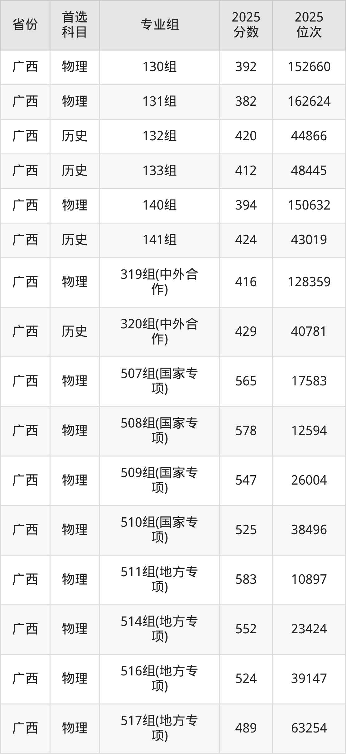 因为大部分地区目前只公布了院校(专业组)分数线,为了方便2026年考生参考,本文就整理出广西医科大学在全国各省不同科类的最低分:
