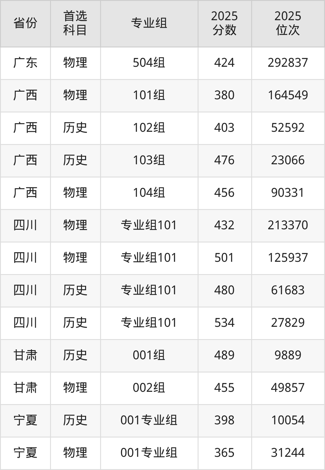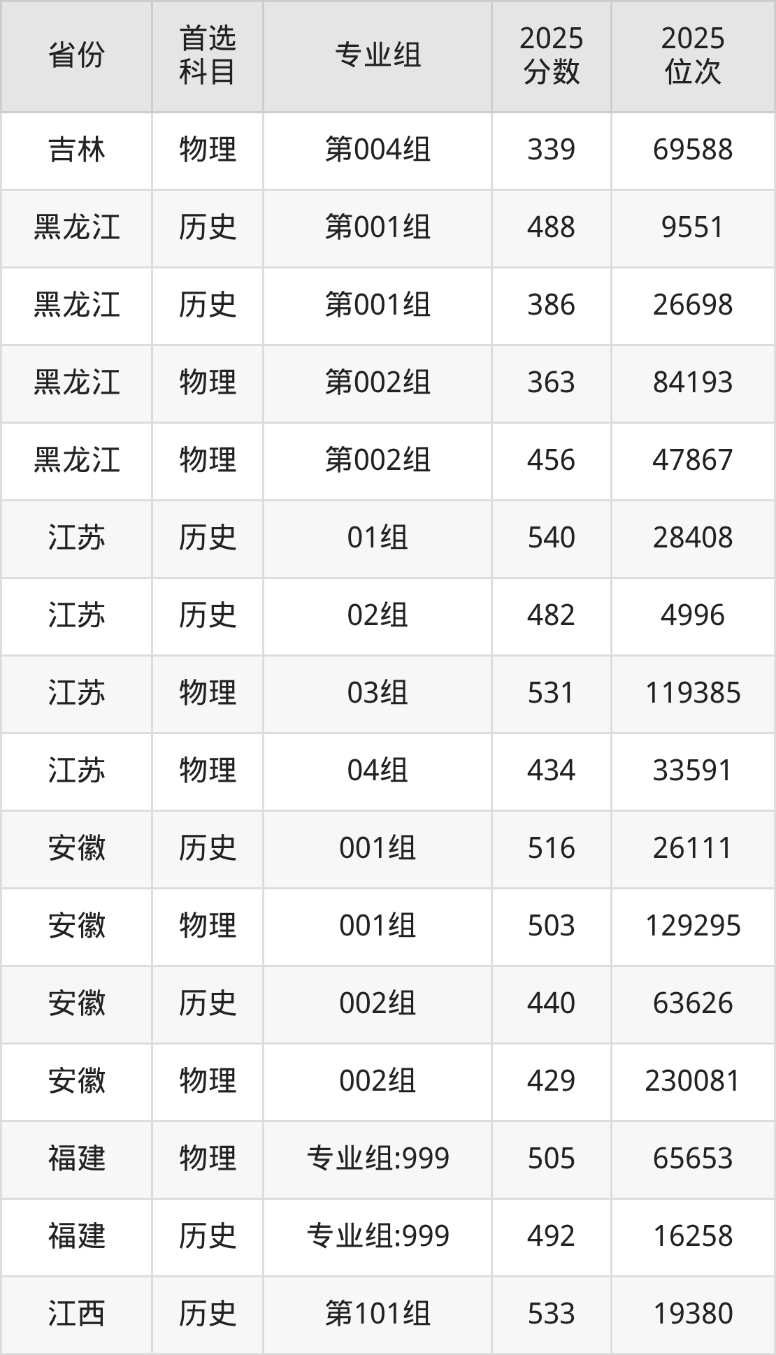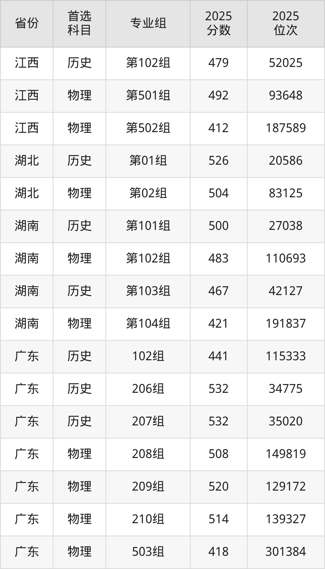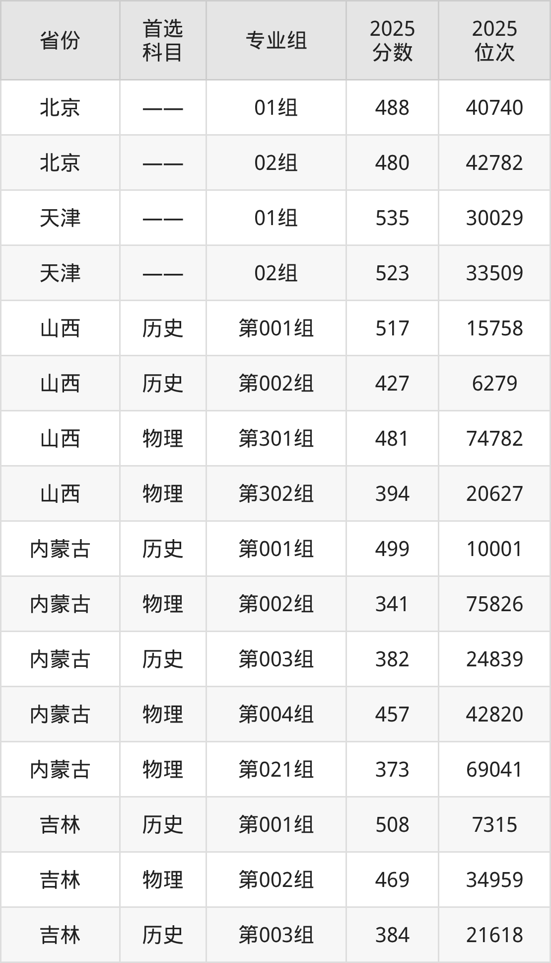 因为大部分地区目前只公布了院校(专业组)分数线,为了方便2026年考生参考,本文就整理出民政职业大学在全国各省不同科类的最低分: