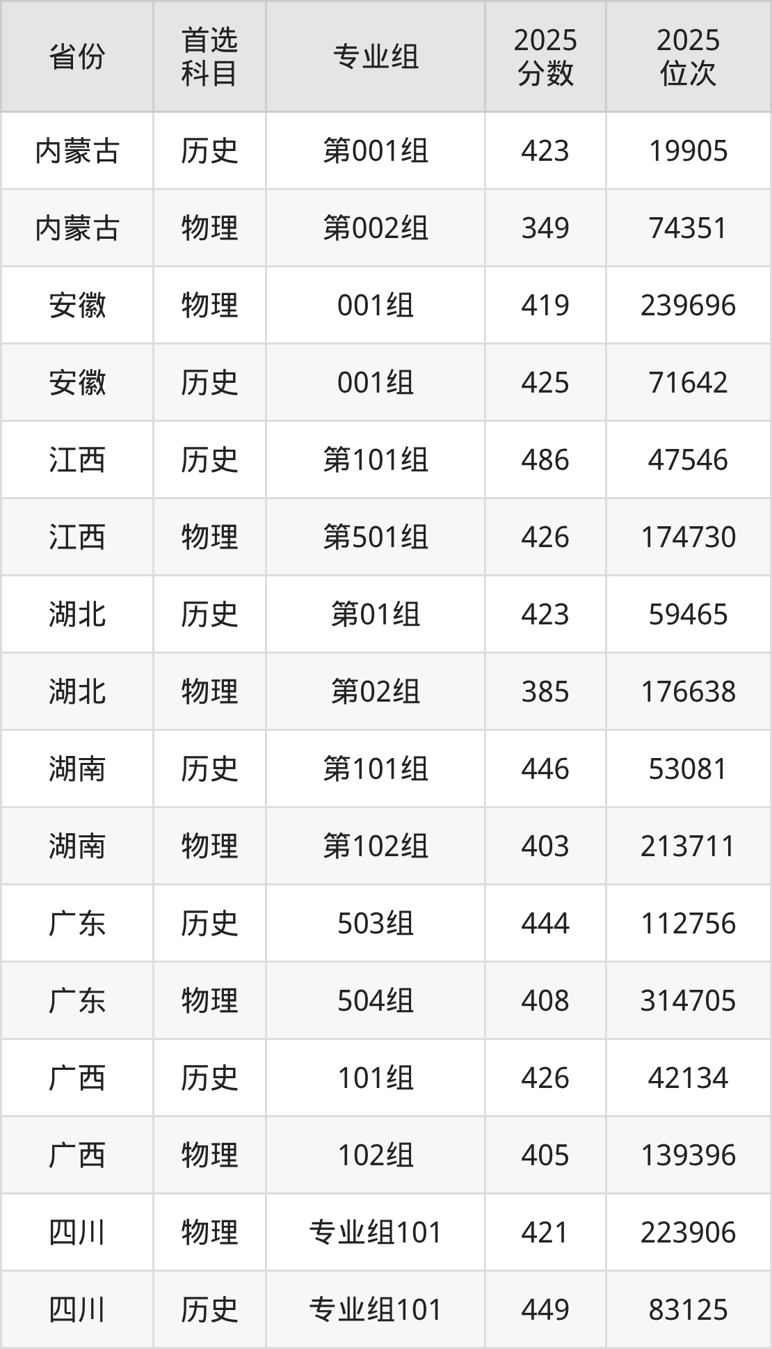 3.安徽:历史类425分、71642位,物理类419分、239696位