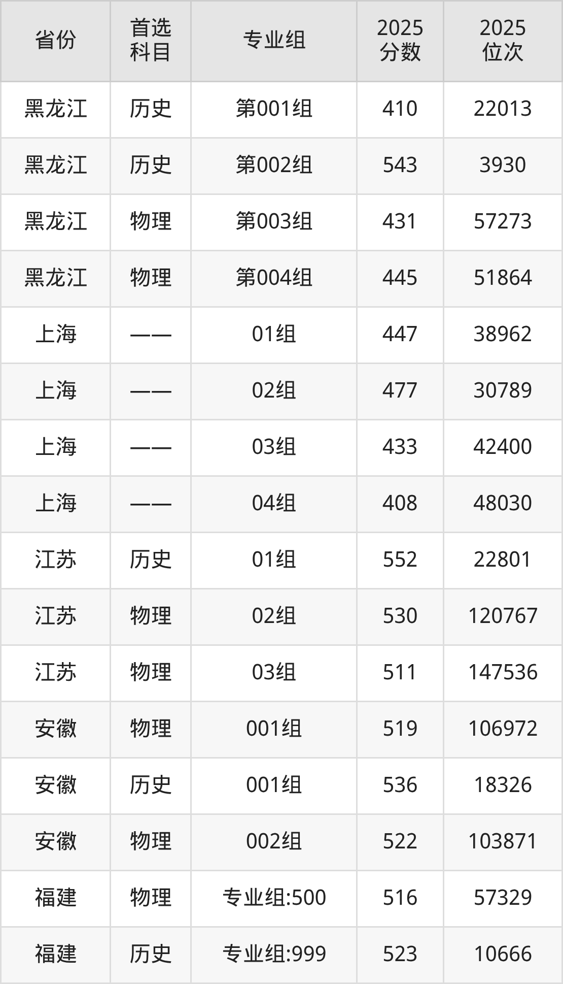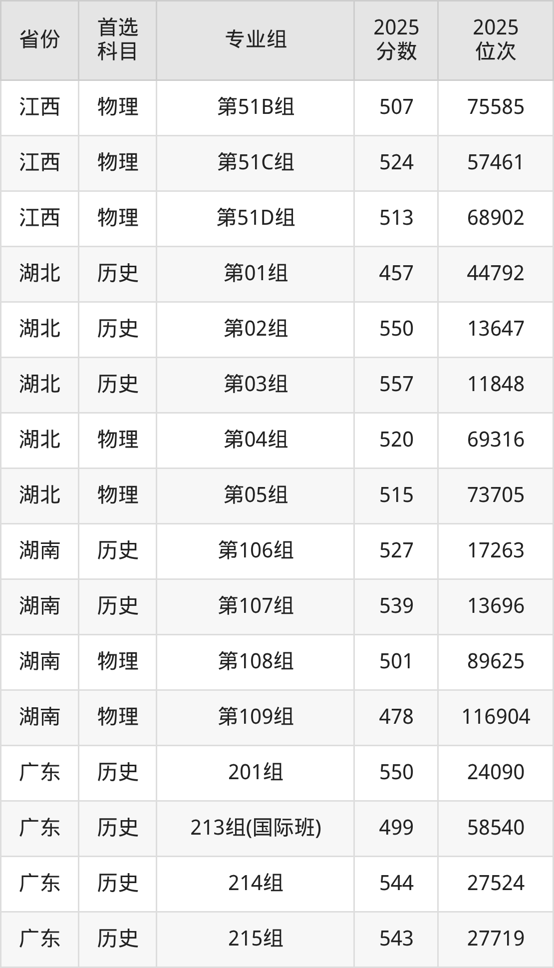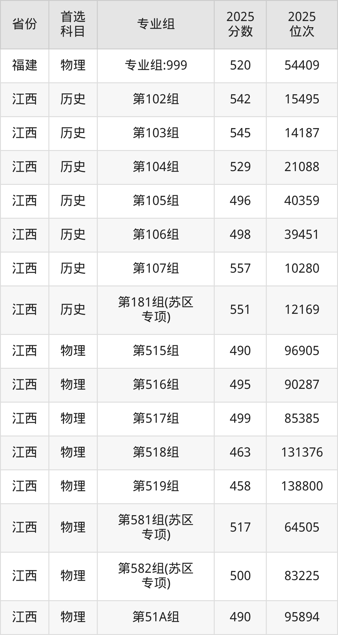因为大部分地区目前只公布了院校(专业组)分数线,为了方便2026年考生参考,本文就整理出江西科技师范大学在全国各省不同科类的最低分: