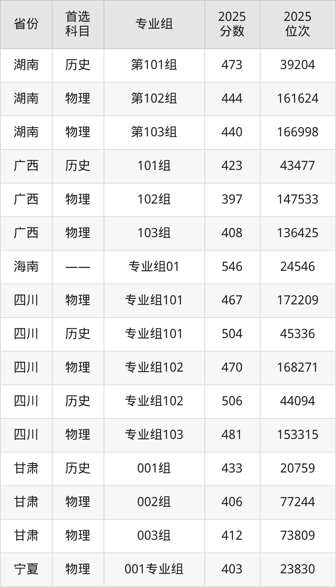 因为大部分地区目前只公布了院校(专业组)分数线,为了方便2026年考生参考,本文就整理出重庆工商大学派斯学院在全国各省不同科类的最低分: