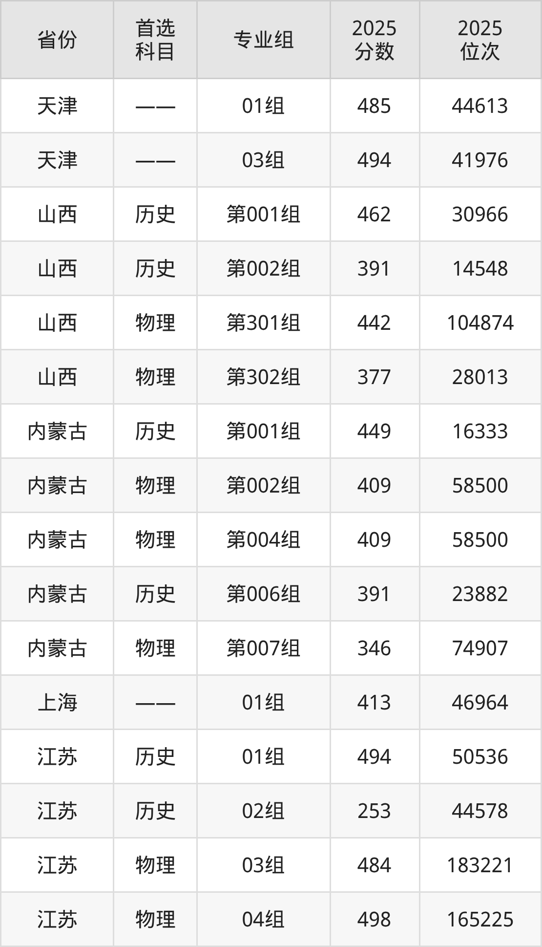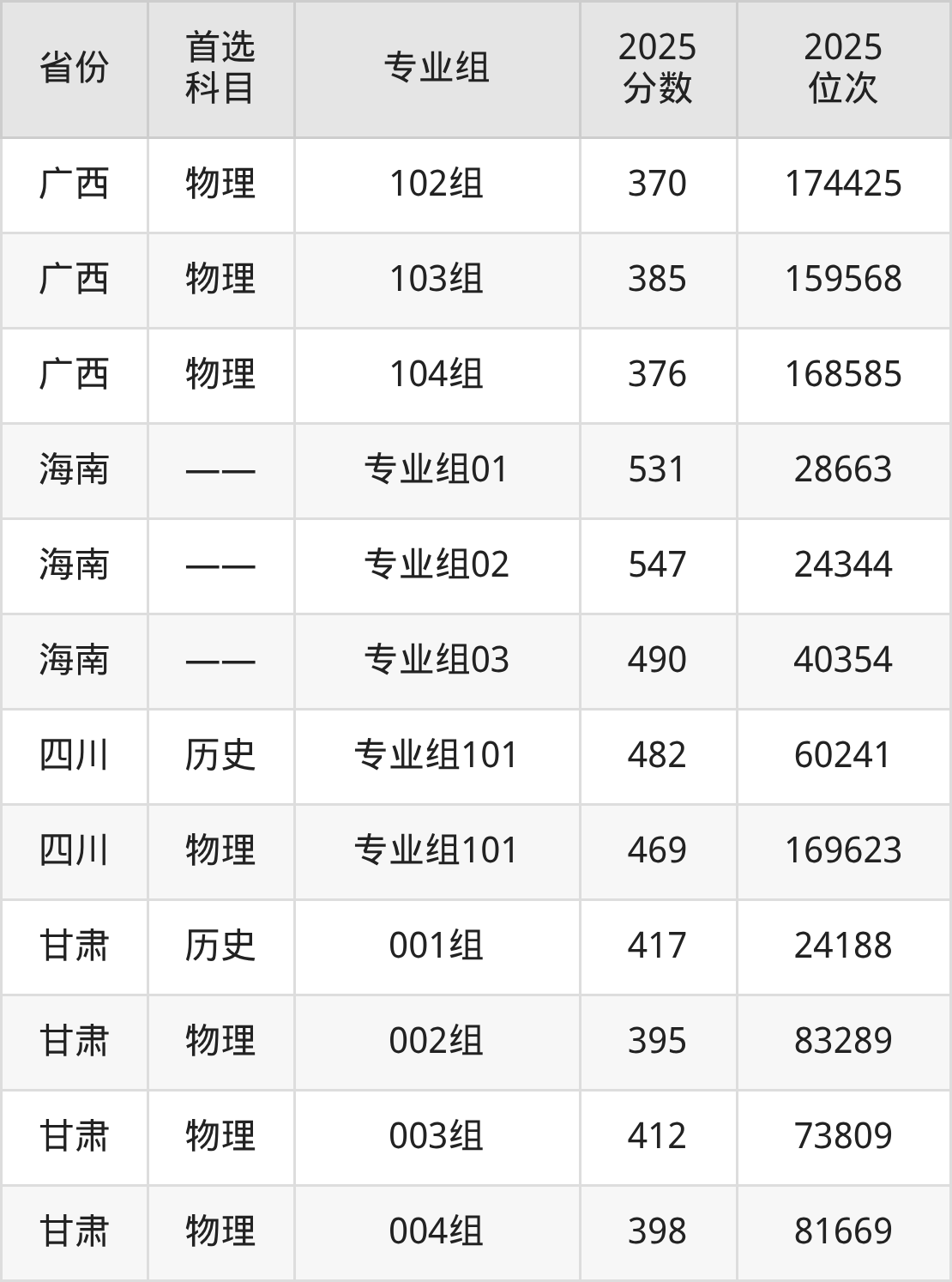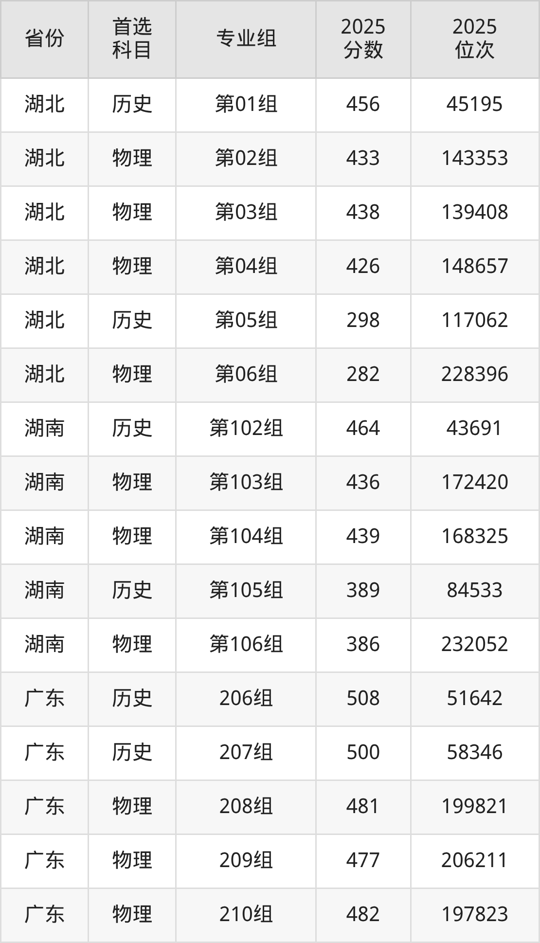 因为大部分地区目前只公布了院校(专业组)分数线,为了方便2026年考生参考,本文就整理出武汉纺织大学外经贸学院在全国各省不同科类的最低分: