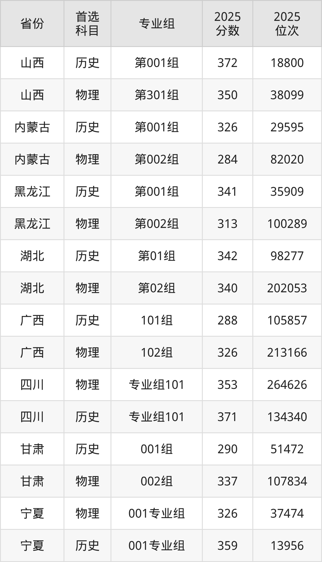 5.湖北:物理类340分、202053位,历史类342分、98277位