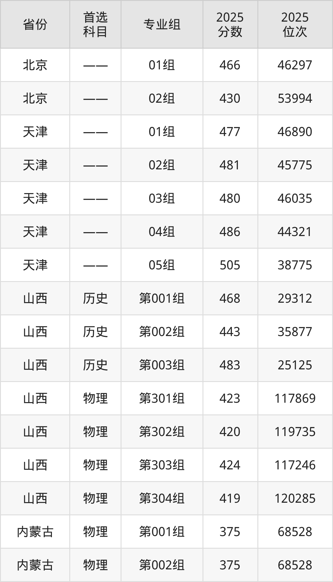 因为大部分地区目前只公布了院校(专业组)分数线,为了方便2026年考生参考,本文就整理出天津仁爱学院在全国各省不同科类的最低分: