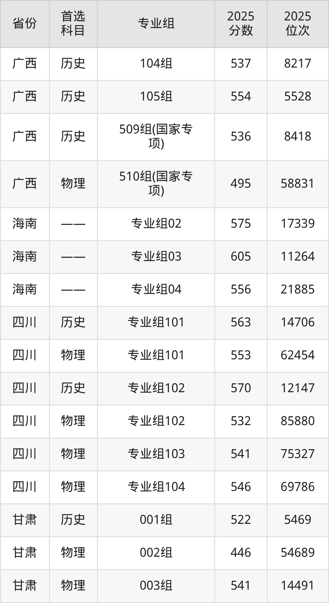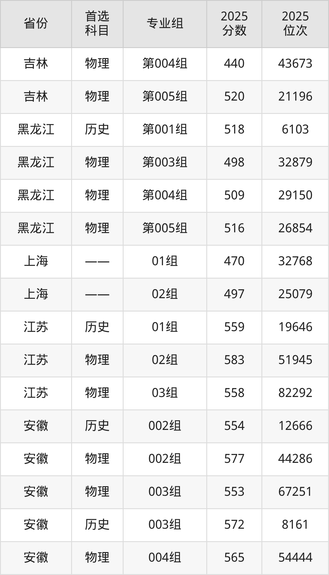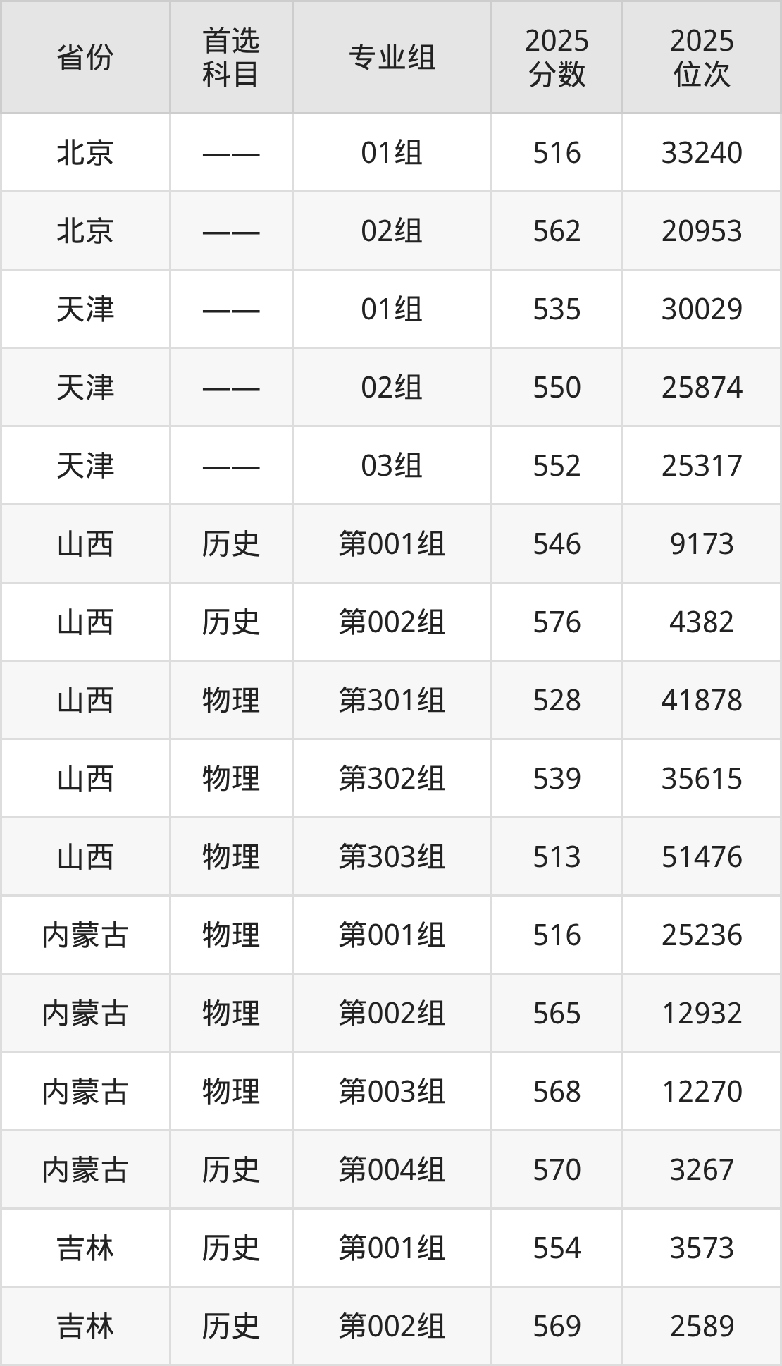 因为大部分地区目前只公布了院校(专业组)分数线,为了方便2026年考生参考,本文就整理出济南大学在全国各省不同科类的最低分: