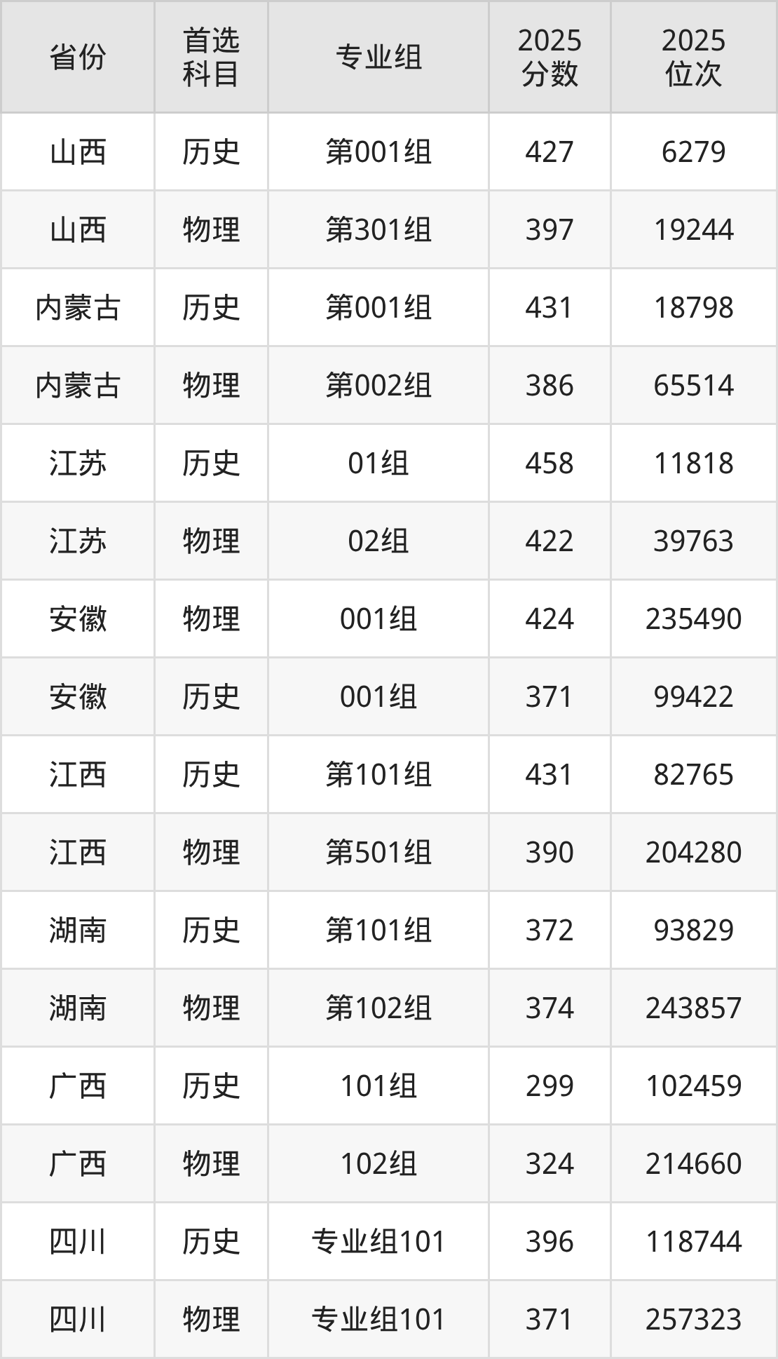 因为大部分地区目前只公布了院校(专业组)分数线,为了方便2026年考生参考,本文就整理出陕西财经职业技术学院在全国各省不同科类的最低分: