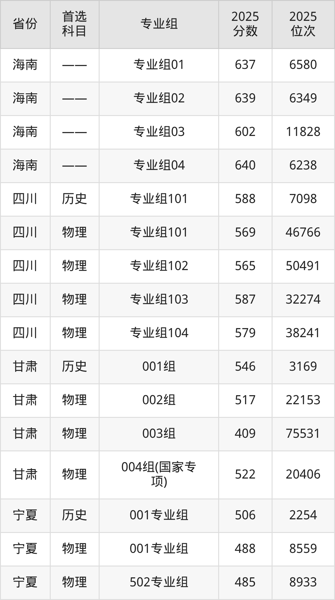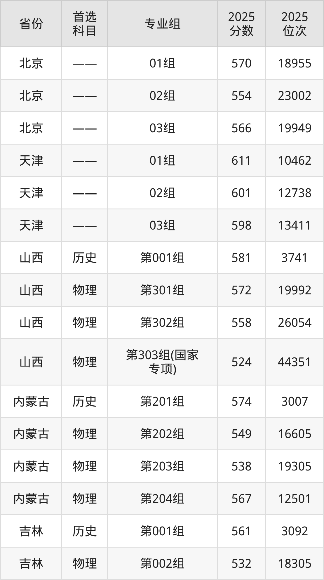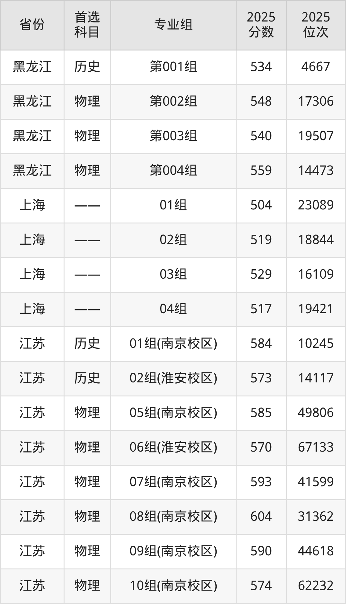 因为大部分地区目前只公布了院校(专业组)分数线,为了方便2026年考生参考,本文就整理出南京林业大学在全国各省不同科类的最低分:
