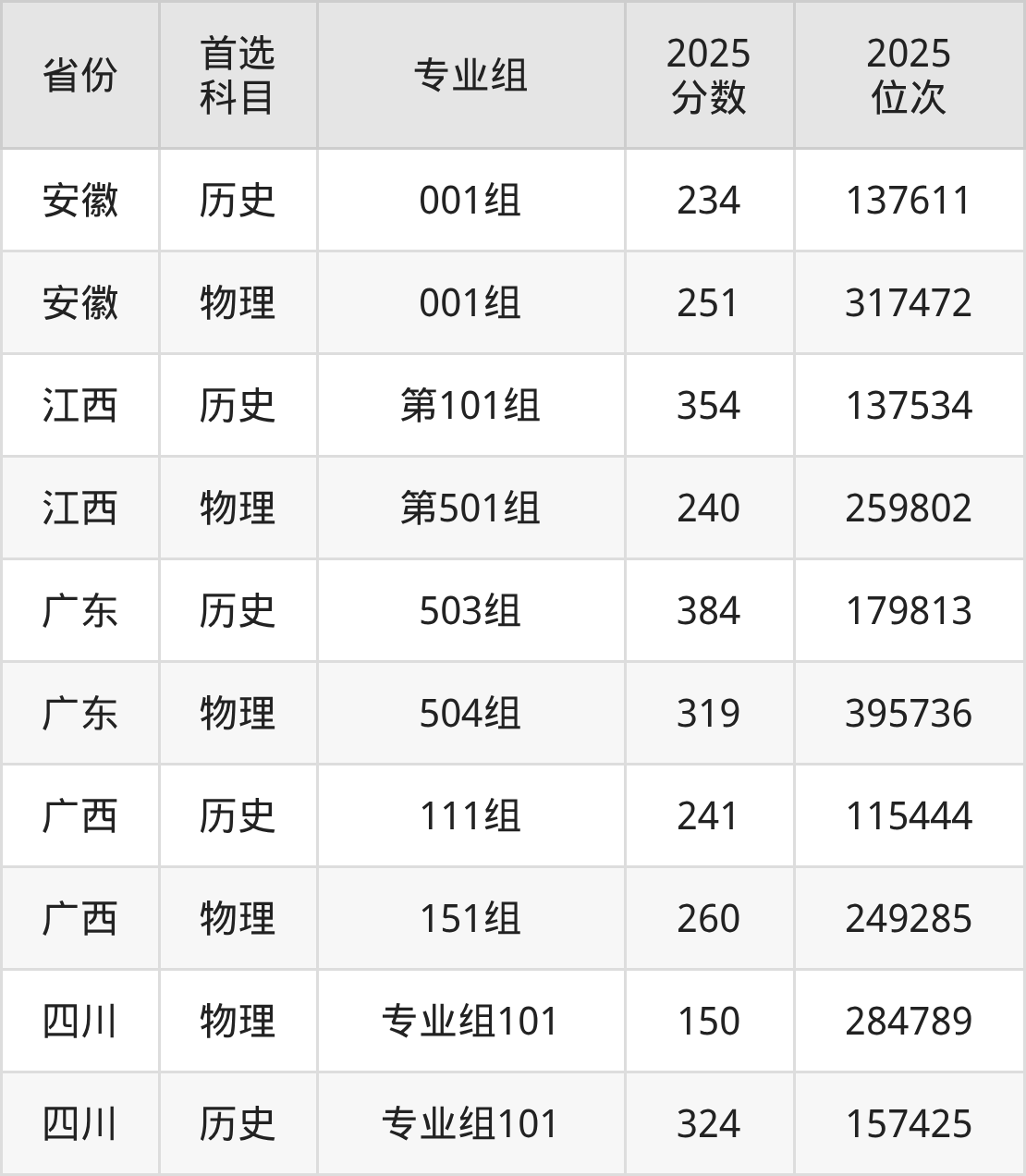 因为大部分地区目前只公布了院校(专业组)分数线,为了方便2026年考生参考,本文就整理出北海康养职业学院在全国各省不同科类的最低分: