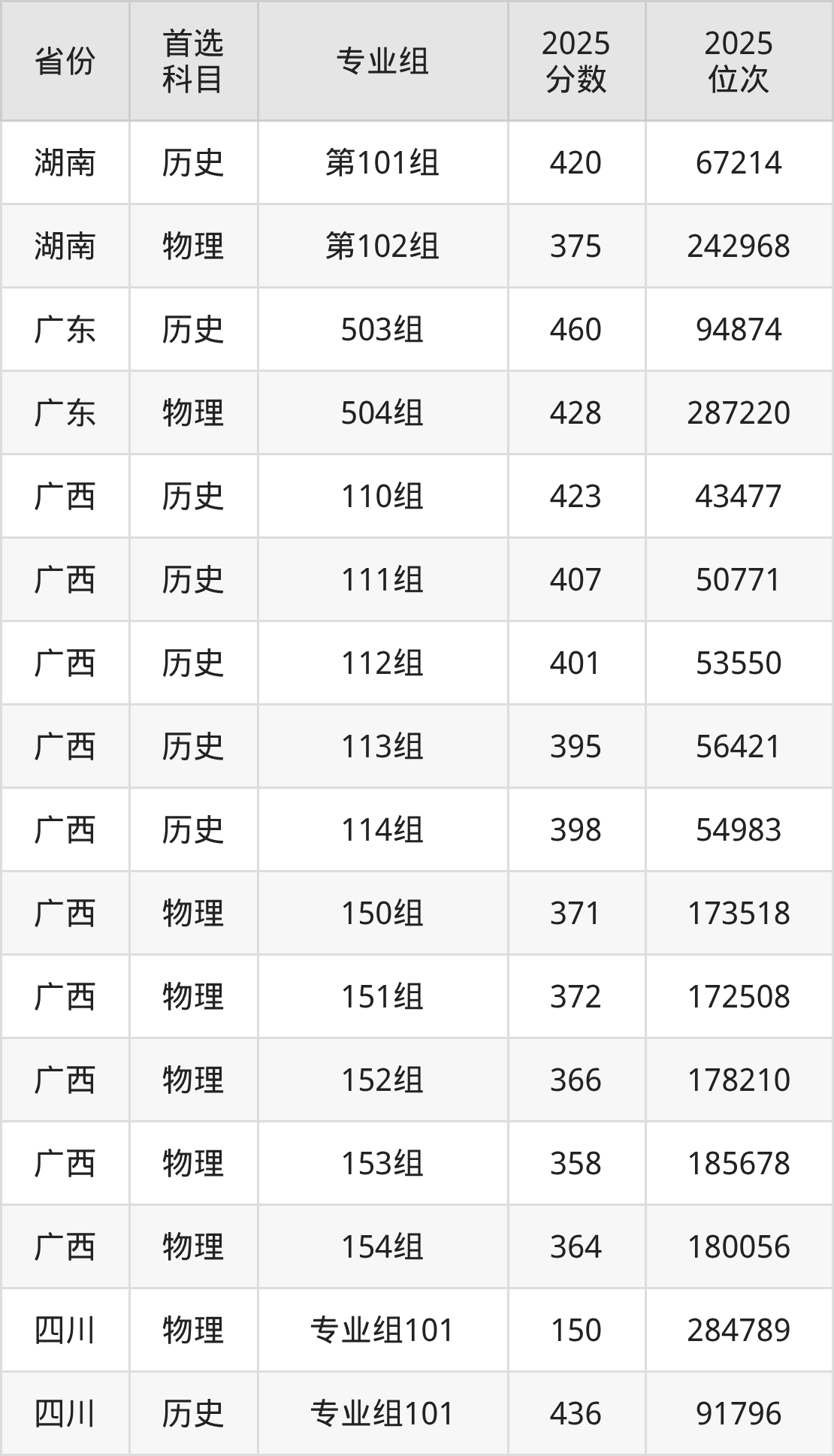 因为大部分地区目前只公布了院校(专业组)分数线,为了方便2026年考生参考,本文就整理出广西卫生职业技术学院在全国各省不同科类的最低分: