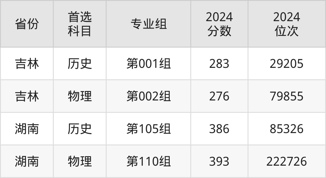 因为大部分地区目前只公布了院校(专业组)分数线,为了方便2025年考生参考,本文就整理出湖南体育职业学院在全国各省不同科类的最低分: