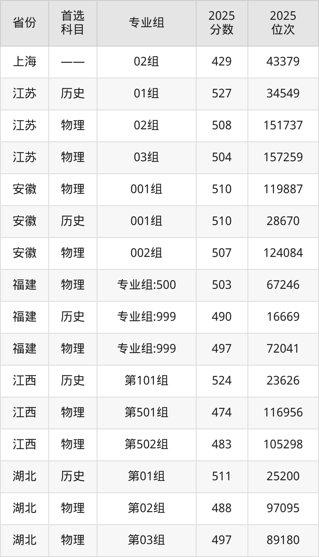 因为大部分地区目前只公布了院校(专业组)分数线,为了方便2026年考生参考,本文就整理出赣南科技学院在全国各省不同科类的最低分: