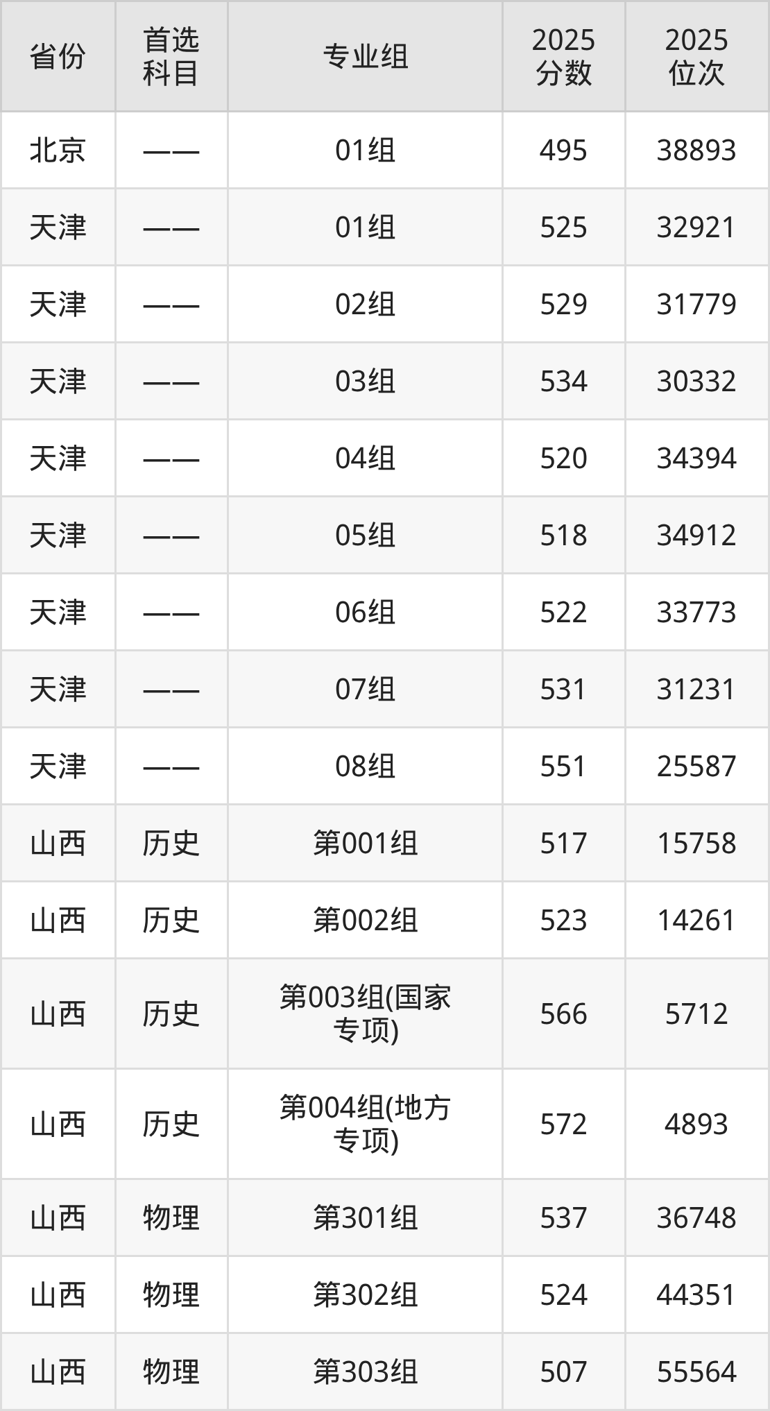 因为大部分地区目前只公布了院校(专业组)分数线,为了方便2026年考生参考,本文就整理出太原科技大学在全国各省不同科类的最低分: