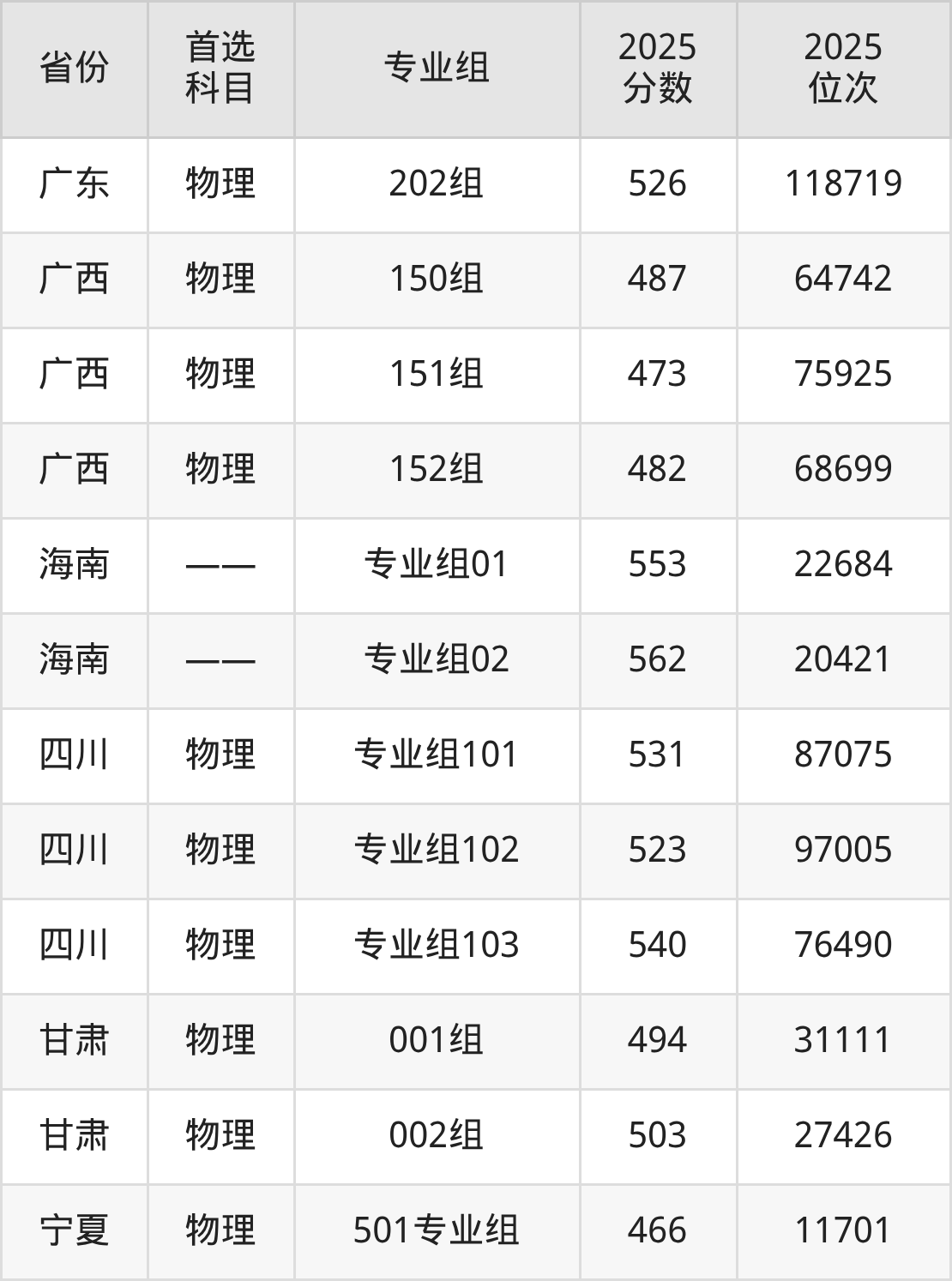 25.宁夏:物理类466分、11701位