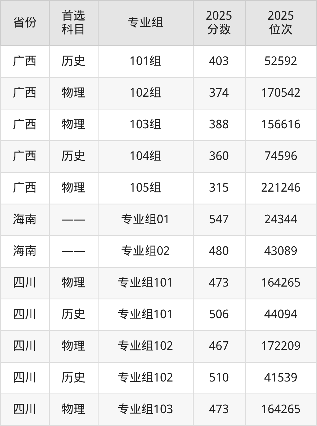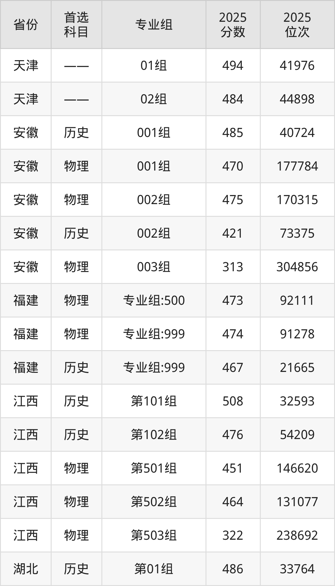 因为大部分地区目前只公布了院校(专业组)分数线,为了方便2026年考生参考,本文就整理出湖北师范大学文理学院在全国各省不同科类的最低分: