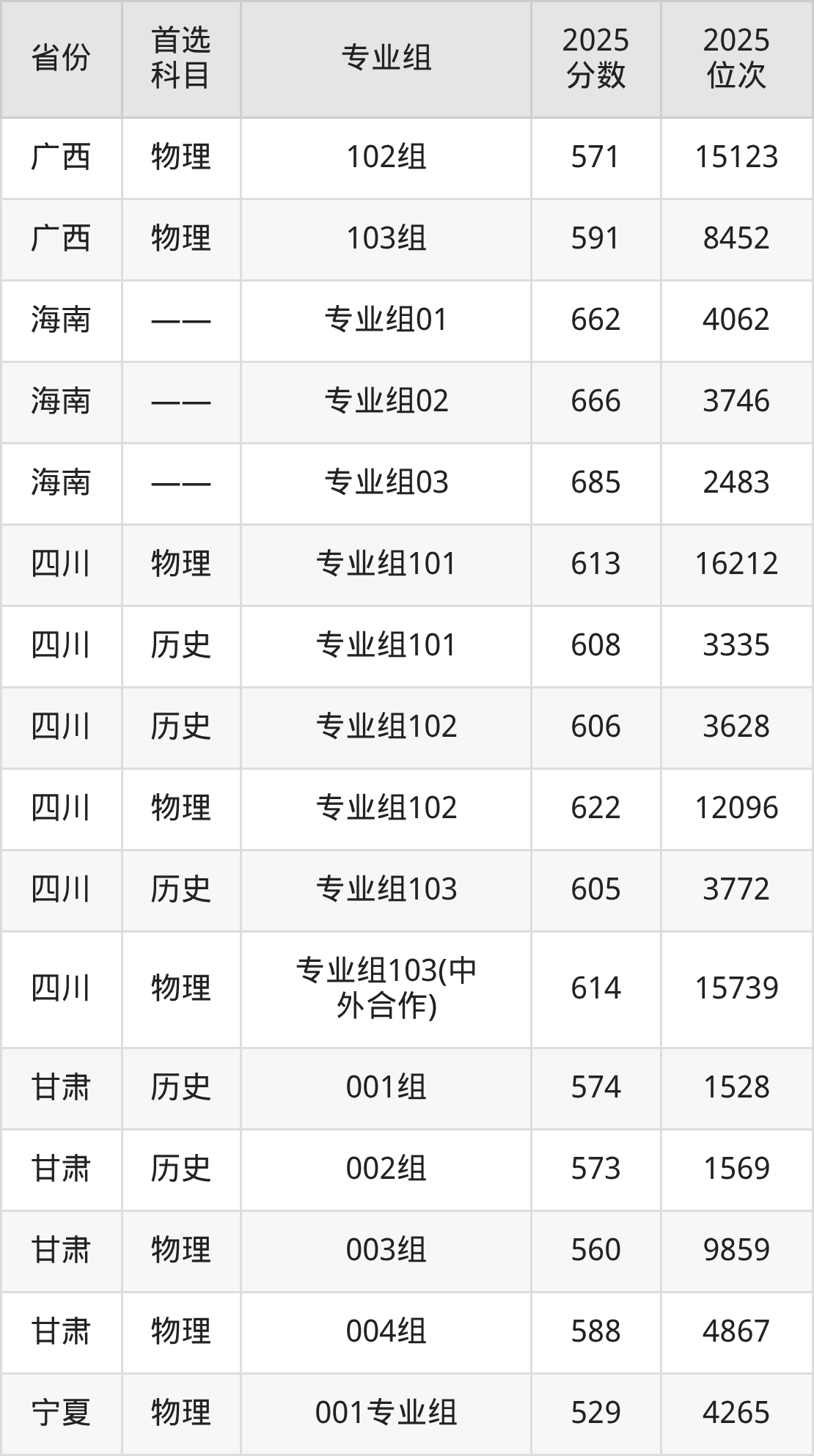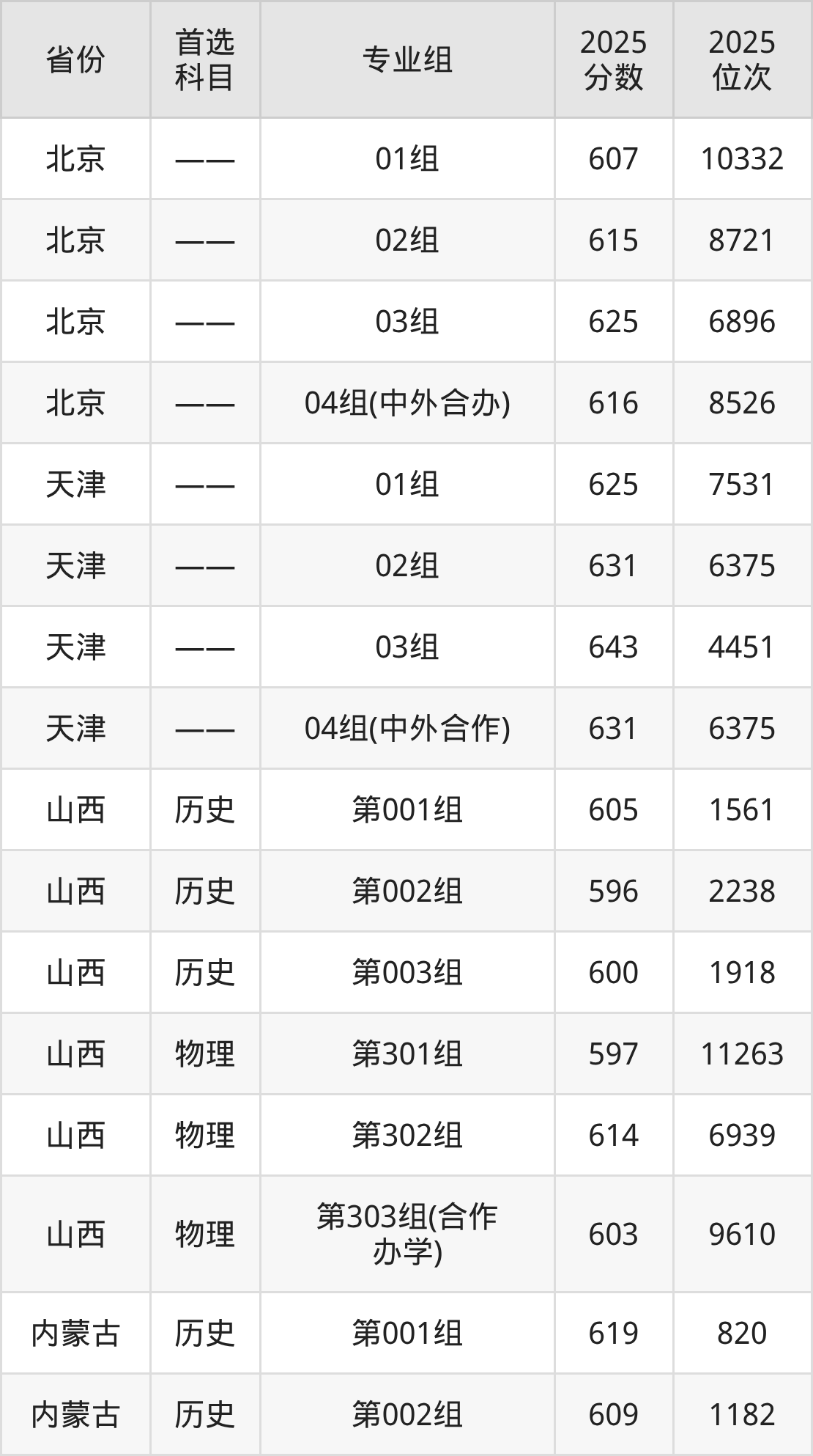 因为大部分地区目前只公布了院校(专业组)分数线,为了方便2026年考生参考,本文就整理出东北大学秦皇岛分校在全国各省不同科类的最低分: